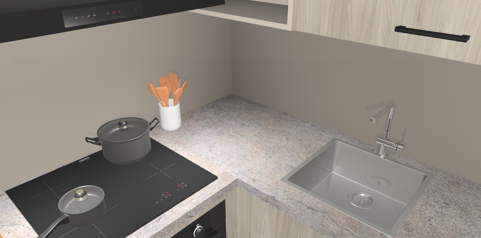 - Uitsparing van kookplaat, spoelbak en kraan dient u zelf te verzorgen.