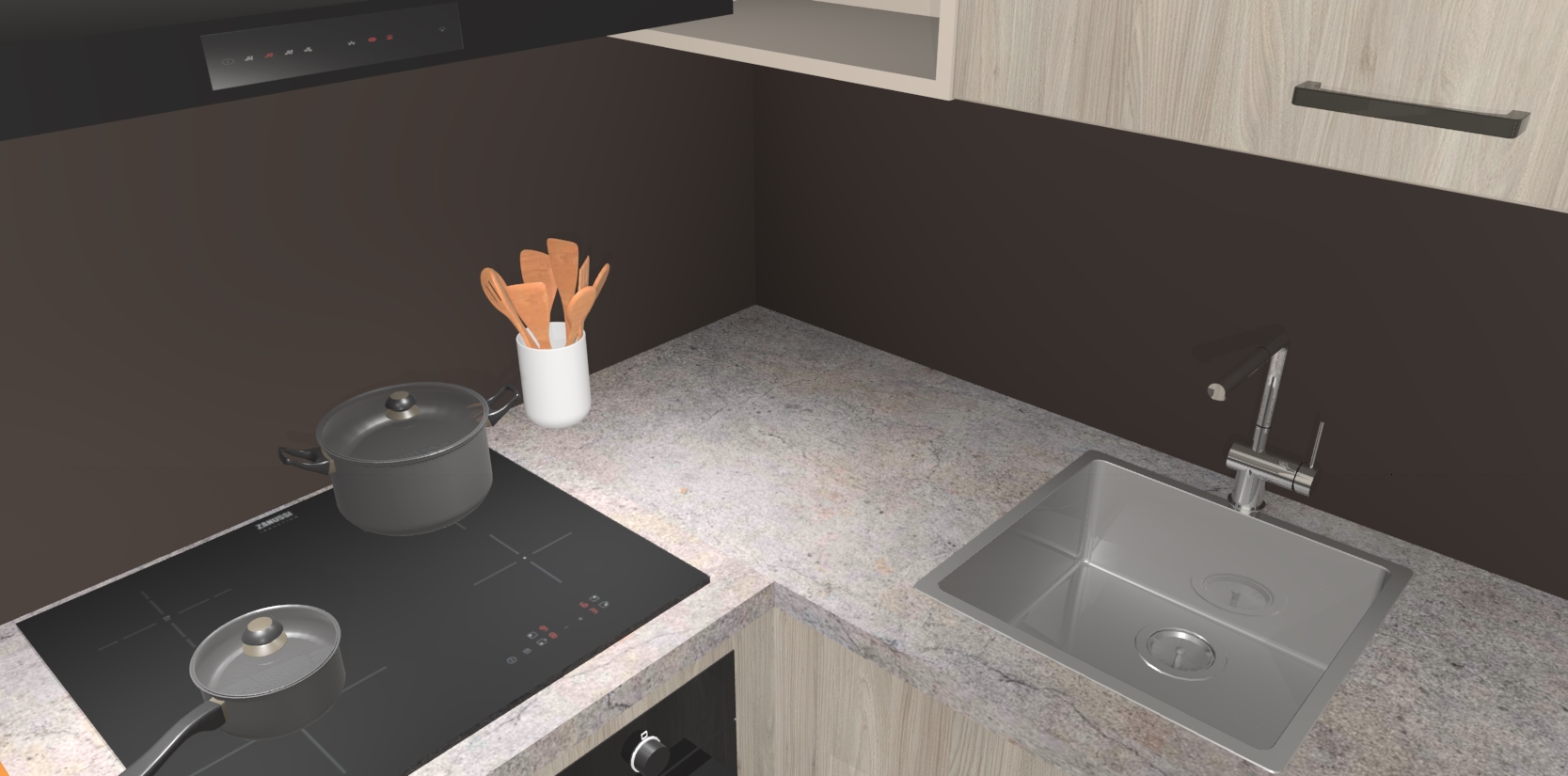 - Uitsparing van kookplaat, spoelbak en kraan dient u zelf te verzorgen.