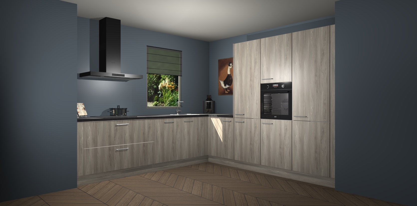 Welkom bij de Olm keuken Laos. Deze prachtige keuken zal de komende jaren het middelpunt van de belangstelling in uw huis zijn. Uitgerust met vijf inbouwapparaten komt u nooit kookgereedschap tekort. Bovendien geeft de warme houtlook elke ruimte een uitnodigende en tijdloze uitstraling.