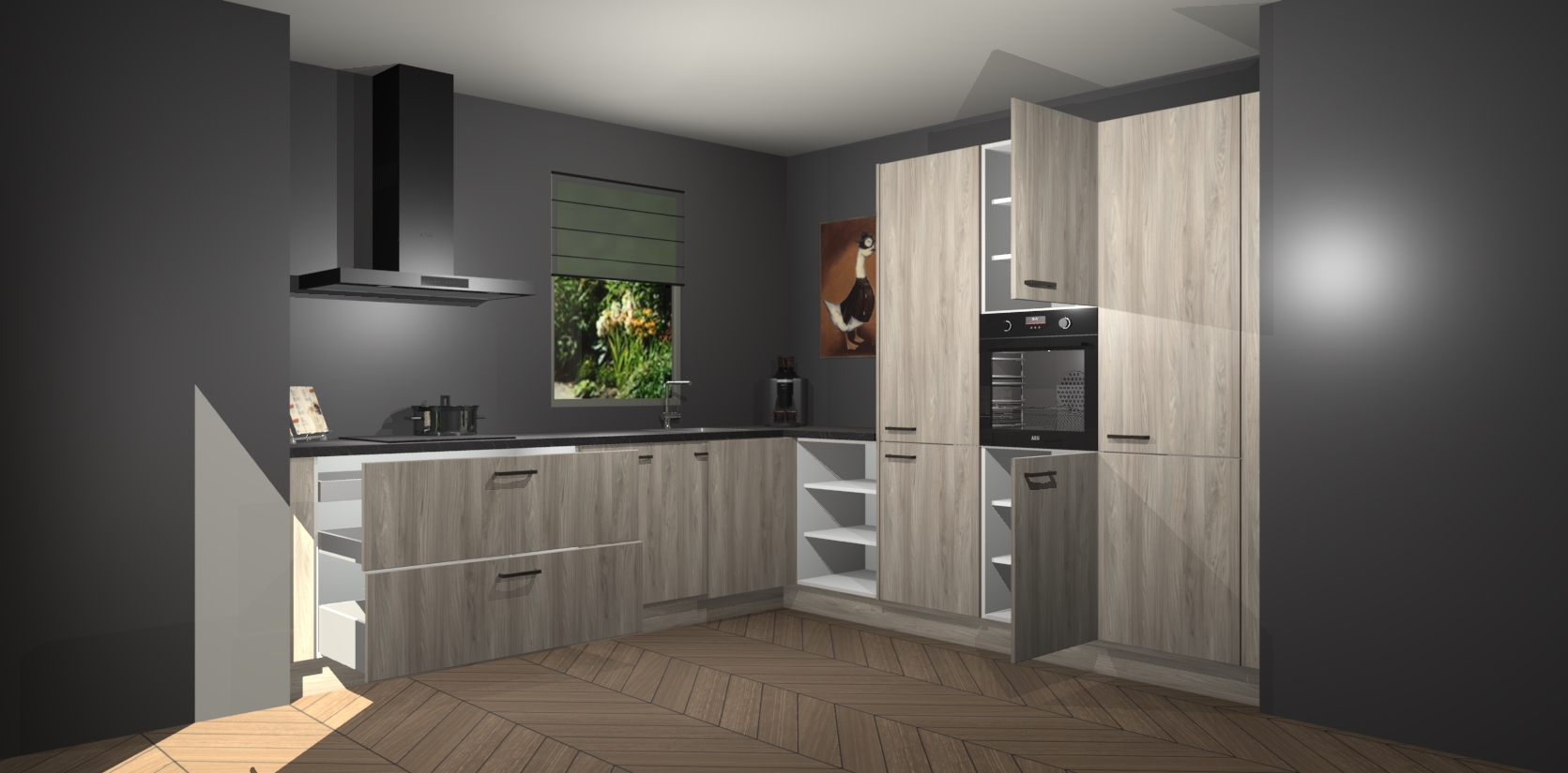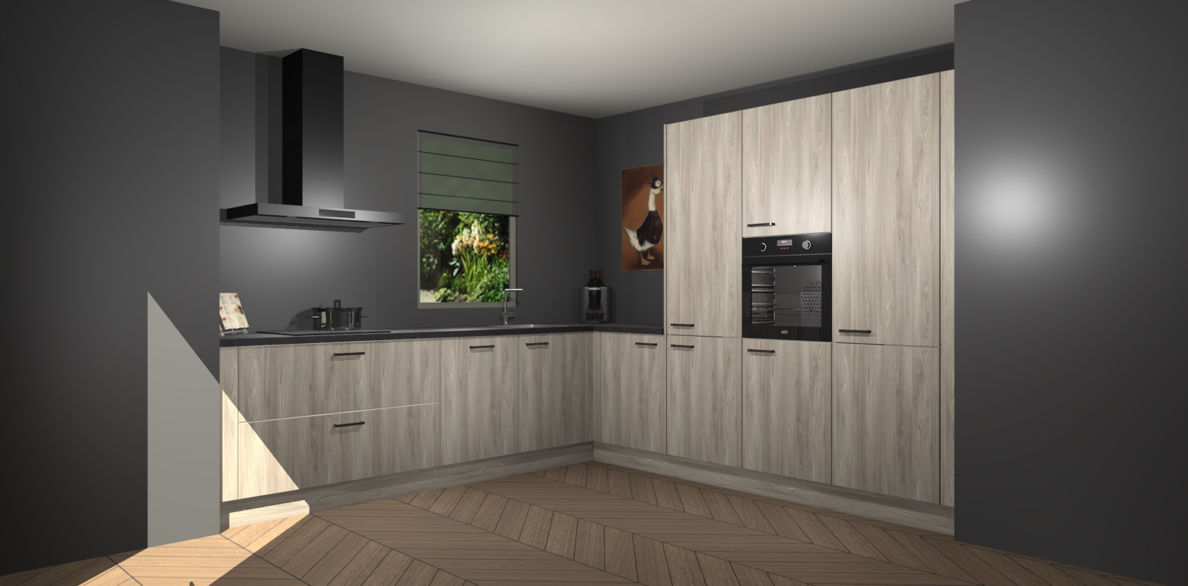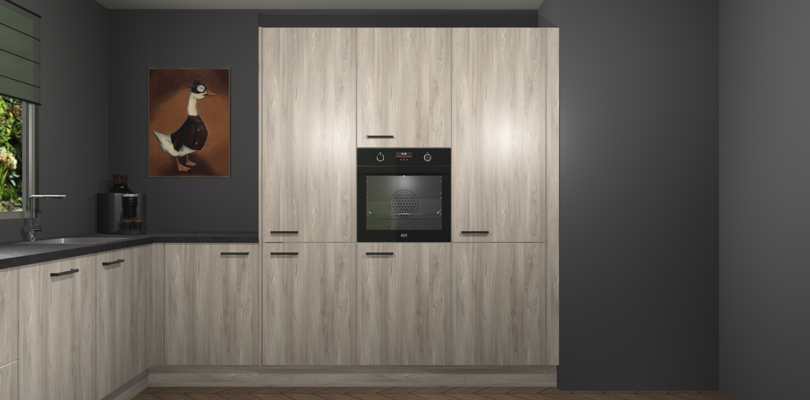 Welkom bij de Olm keuken Laos. Deze prachtige keuken zal de komende jaren het middelpunt van de belangstelling in uw huis zijn. Uitgerust met vijf inbouwapparaten komt u nooit kookgereedschap tekort. Bovendien geeft de warme houtlook elke ruimte een uitnodigende en tijdloze uitstraling.