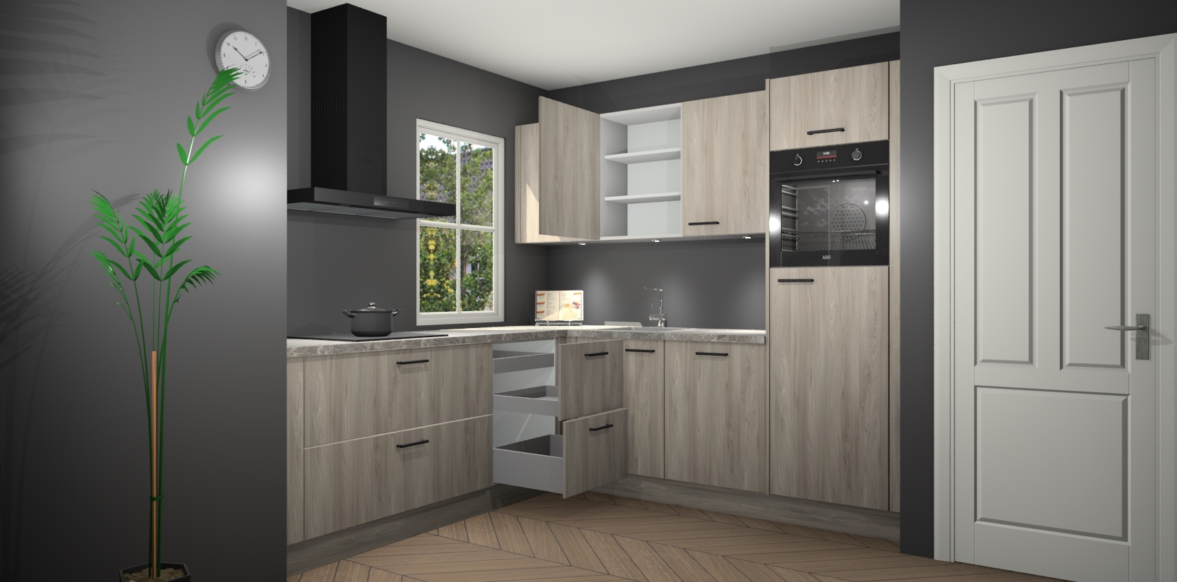 - Bij een hoekwerkblad zijn de hoeken in gevreesd en op maat gemaakt