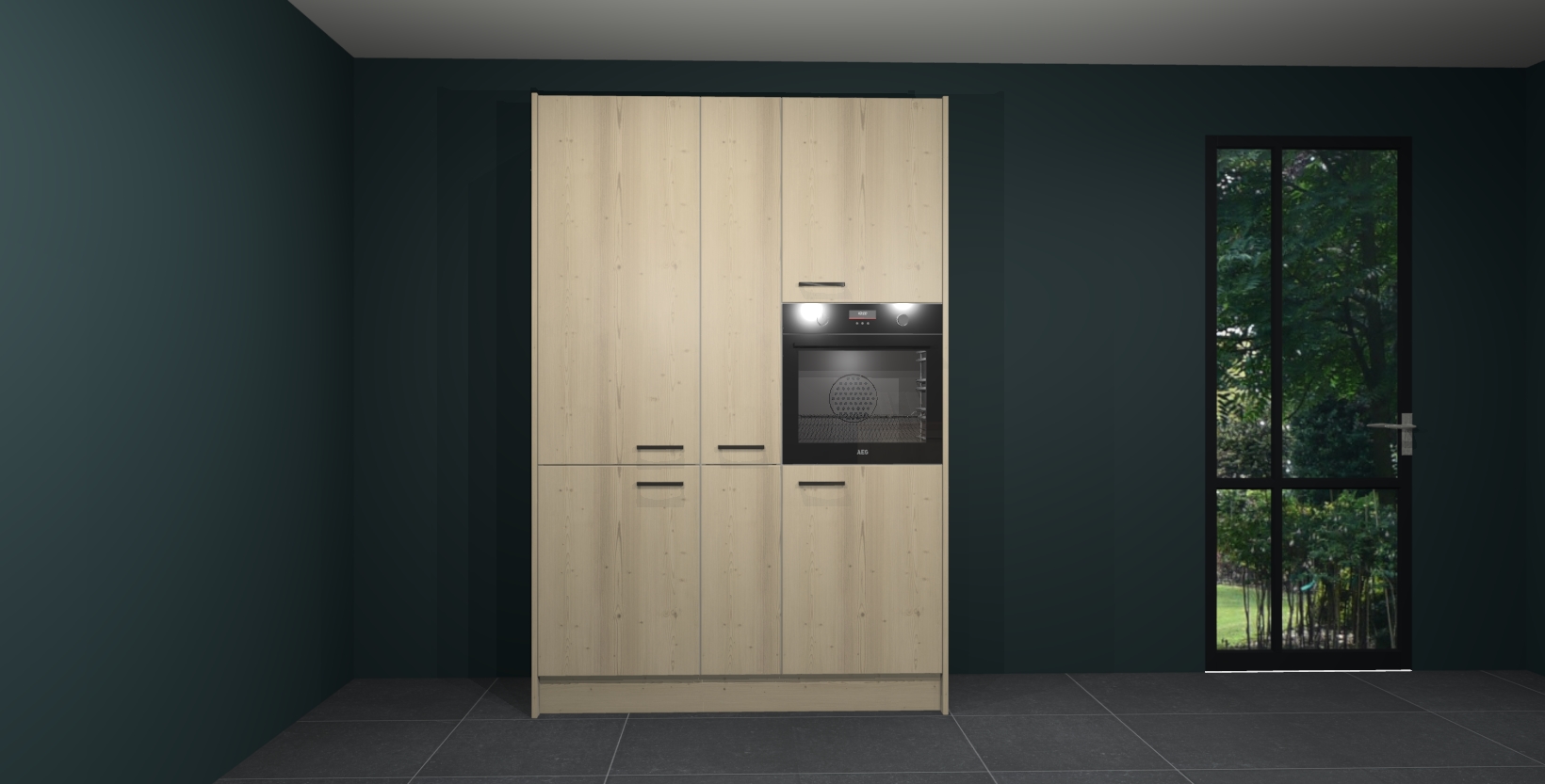 Met een modern, tijdloos design en ruime opslagruimte, zult u zich in no-time thuis voelen in uw nieuwe keuken. Uw leven wordt eenvoudiger met de soft-close deuren die voor het ultieme stille comfort zorgen - geen geluid dat u stoort terwijl u kookt. Ook is de keuken voorzien van 5 ingebouwde apparaten: een oven, inductie kookplaat, afzuigkap, vaatwasser en koelkast. Deze kunnen gemakkelijk na bestelling worden bijgewerkt naar AEG - waardoor uw luxe ervaring compleet is.