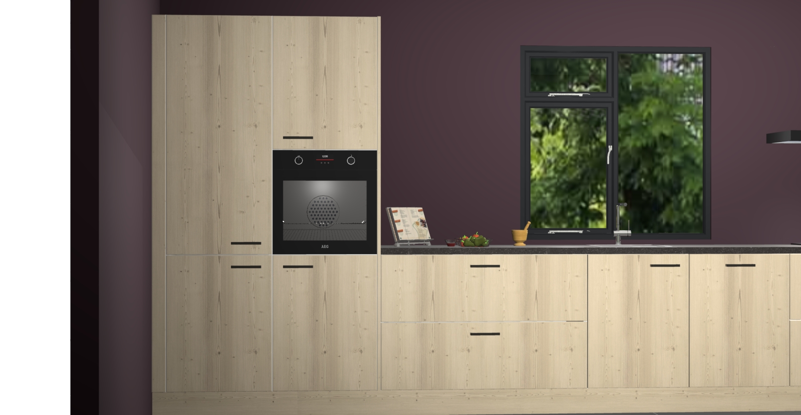 De Olm keuken Lille wordt geleverd met vijf inbouwapparaten - een oven, inductiekookplaat, afzuigkap, vaatwasser en koelkast. Maar dat is nog niet alles! Na bestelling kunnen deze apparaten eenvoudig worden geüpgraded naar premium AEG-apparatuur. Bovendien is er zelfs de optie om de oven te vervangen door een combimagnetron of uw inductiekookplaat te vervangen door een kookplaat met geïntegreerde afzuiging.