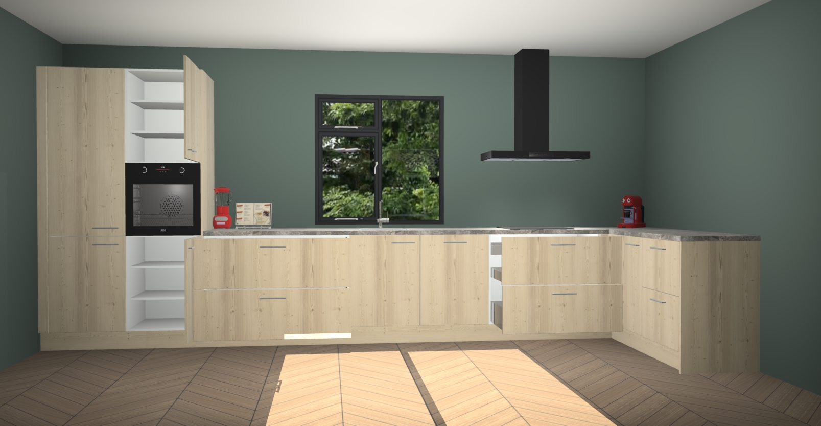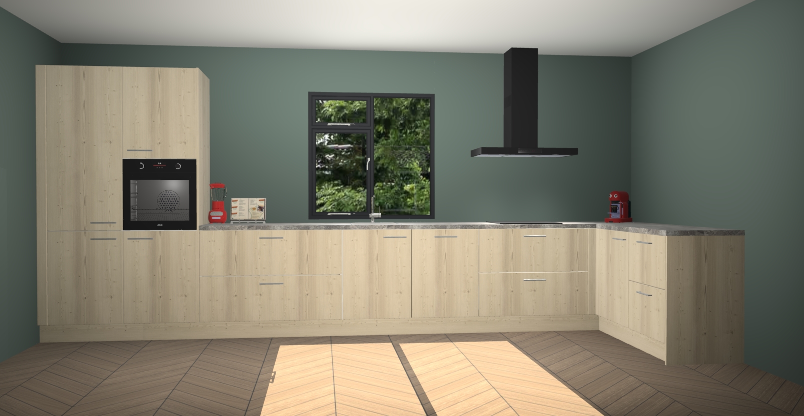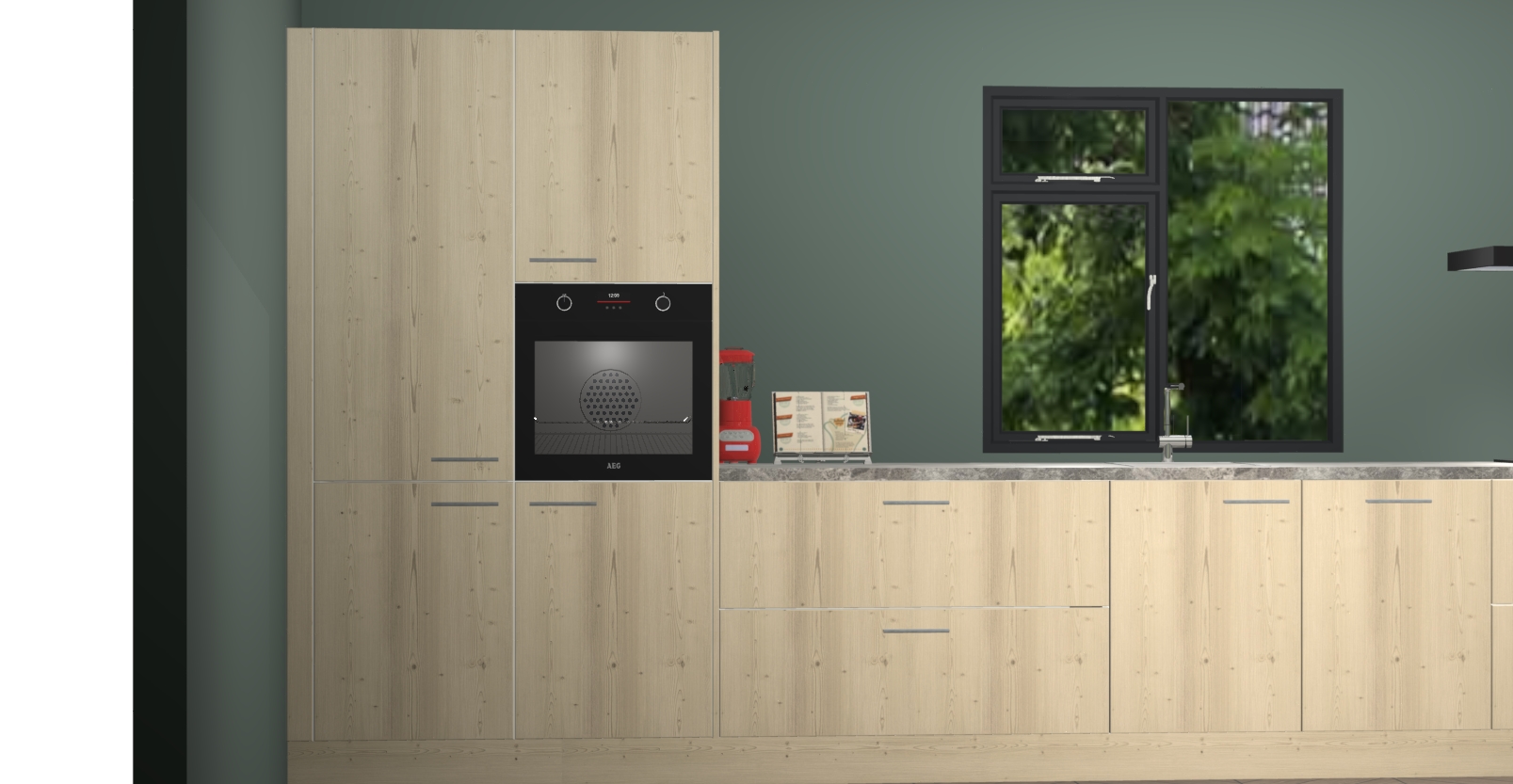 De Olm keuken Lille wordt geleverd met vijf inbouwapparaten - een oven, inductiekookplaat, afzuigkap, vaatwasser en koelkast. Maar dat is nog niet alles! Na bestelling kunnen deze apparaten eenvoudig worden geüpgraded naar premium AEG-apparatuur. Bovendien is er zelfs de optie om de oven te vervangen door een combimagnetron of uw inductiekookplaat te vervangen door een kookplaat met geïntegreerde afzuiging.