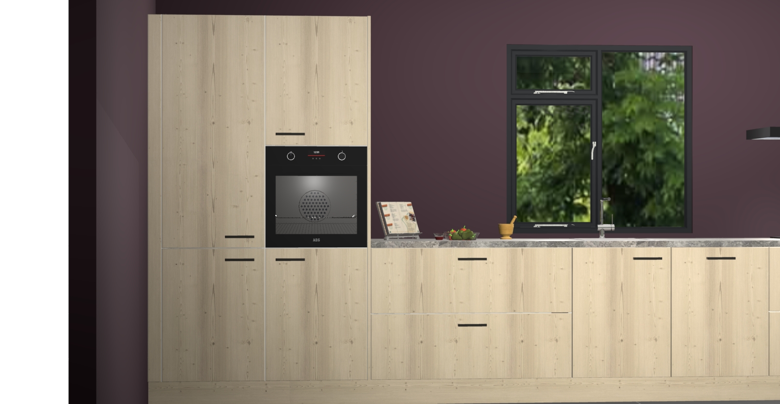 De Olm keuken Lille wordt geleverd met vijf inbouwapparaten - een oven, inductiekookplaat, afzuigkap, vaatwasser en koelkast. Maar dat is nog niet alles! Na bestelling kunnen deze apparaten eenvoudig worden geüpgraded naar premium AEG-apparatuur. Bovendien is er zelfs de optie om de oven te vervangen door een combimagnetron of uw inductiekookplaat te vervangen door een kookplaat met geïntegreerde afzuiging.