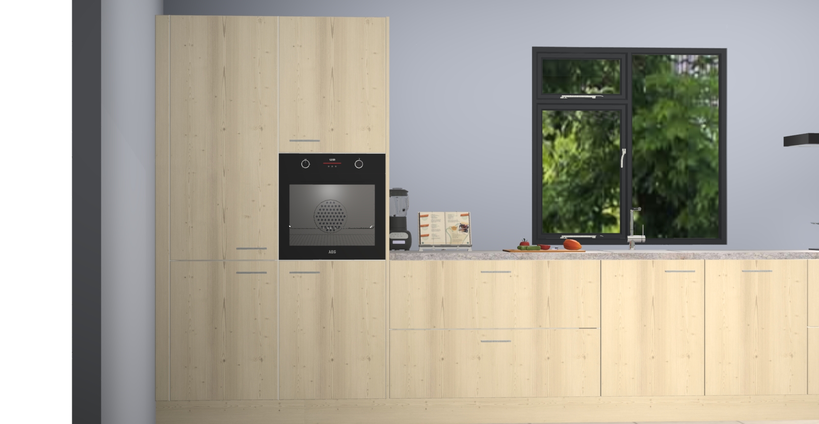 De Olm keuken Lille wordt geleverd met vijf inbouwapparaten - een oven, inductiekookplaat, afzuigkap, vaatwasser en koelkast. Maar dat is nog niet alles! Na bestelling kunnen deze apparaten eenvoudig worden geüpgraded naar premium AEG-apparatuur. Bovendien is er zelfs de optie om de oven te vervangen door een combimagnetron of uw inductiekookplaat te vervangen door een kookplaat met geïntegreerde afzuiging.