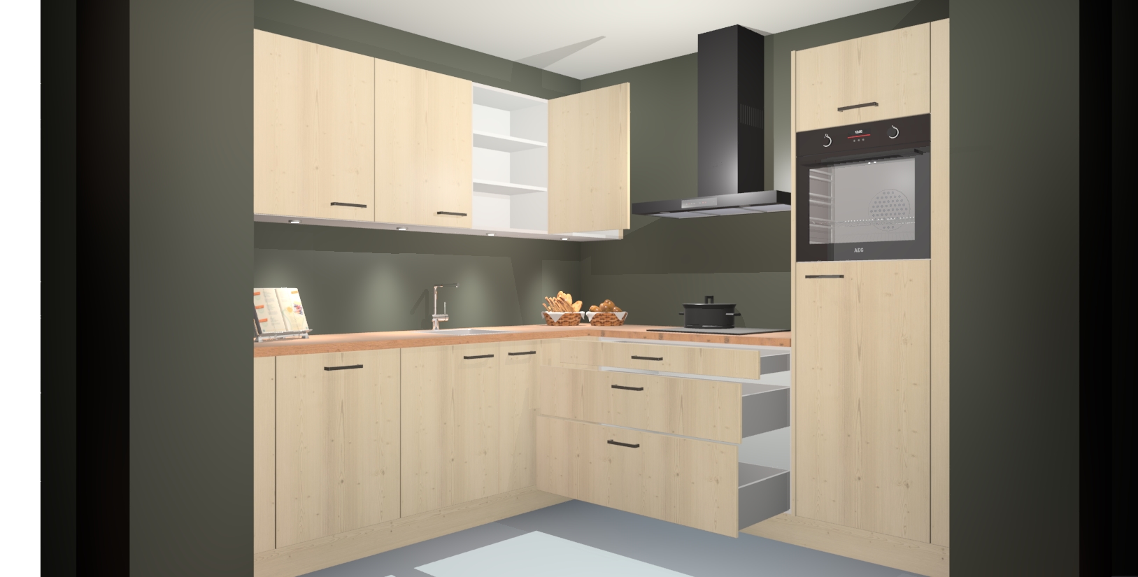 Met een modern, tijdloos design en ruime opslagruimte, zult u zich in no-time thuis voelen in uw nieuwe keuken. Uw leven wordt eenvoudiger met de soft-close deuren die voor het ultieme stille comfort zorgen - geen geluid dat u stoort terwijl u kookt. Ook is de keuken voorzien van 5 ingebouwde apparaten: een oven, inductie kookplaat, afzuigkap, vaatwasser en koelkast. Deze kunnen gemakkelijk na bestelling worden bijgewerkt naar AEG - waardoor uw luxe ervaring compleet is.