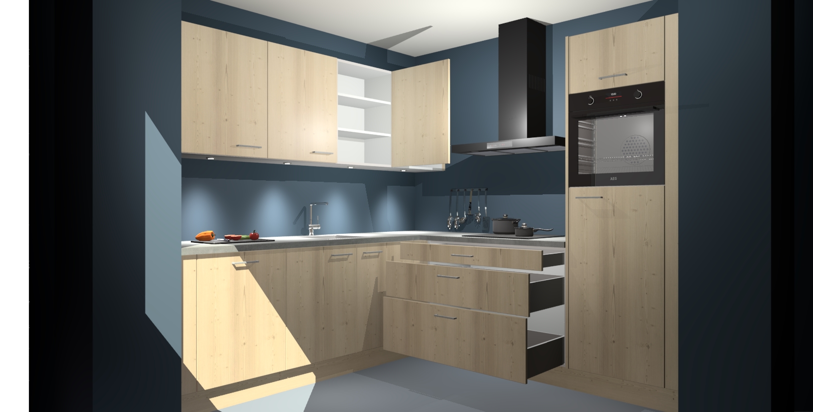 Met een modern, tijdloos design en ruime opslagruimte, zult u zich in no-time thuis voelen in uw nieuwe keuken. Uw leven wordt eenvoudiger met de soft-close deuren die voor het ultieme stille comfort zorgen - geen geluid dat u stoort terwijl u kookt. Ook is de keuken voorzien van 5 ingebouwde apparaten: een oven, inductie kookplaat, afzuigkap, vaatwasser en koelkast. Deze kunnen gemakkelijk na bestelling worden bijgewerkt naar AEG - waardoor uw luxe ervaring compleet is.