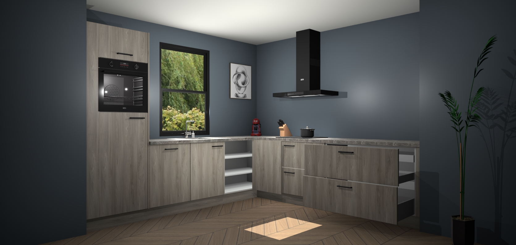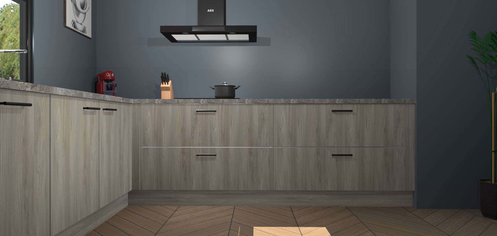 Inclusief plinten, stelpoten en werkblad