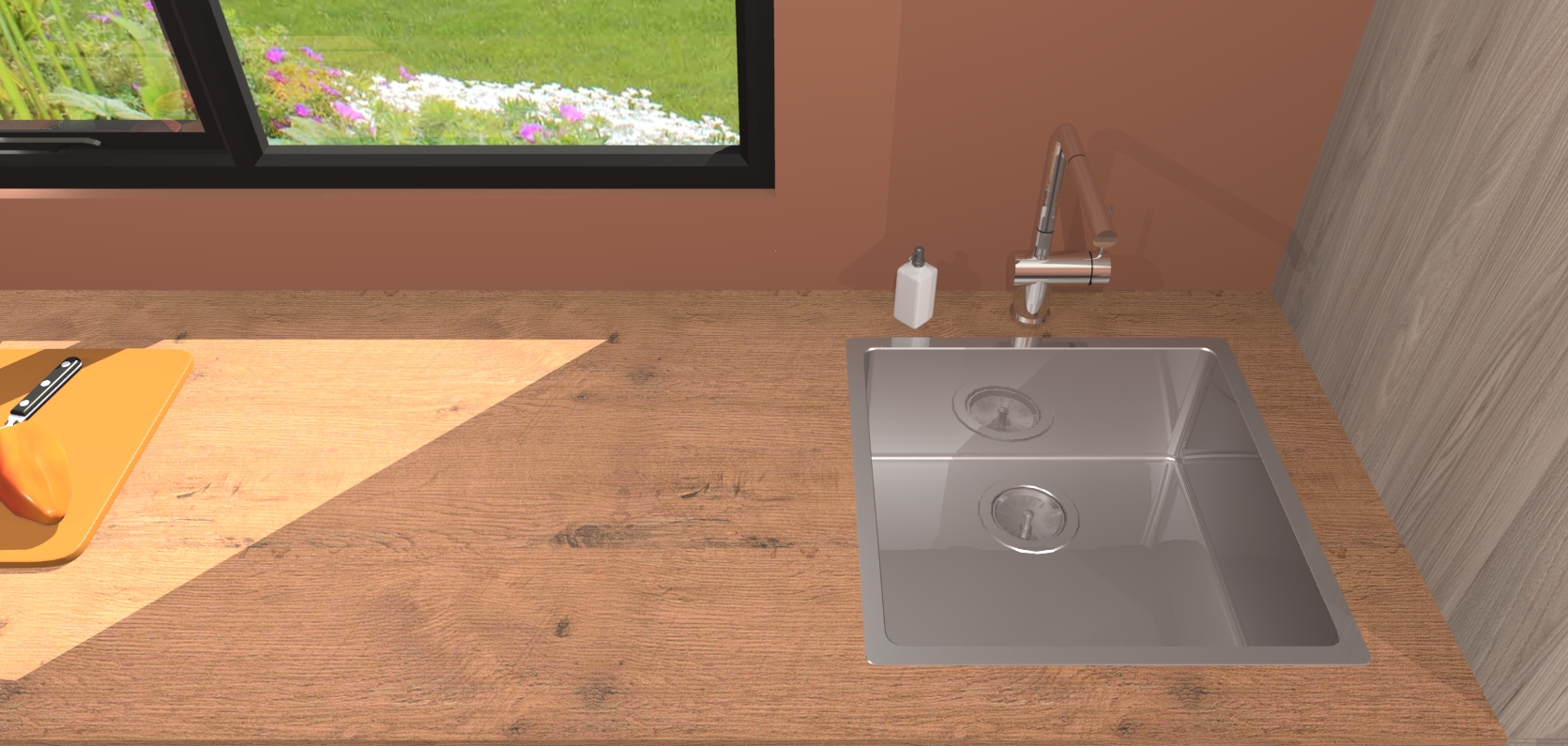 - De spoelbak is nog niet in gevreesd. Dit dient tijdens het werk gedaan te worden