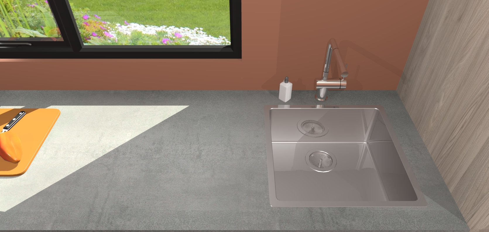 - De spoelbak is nog niet in gevreesd. Dit dient tijdens het werk gedaan te worden