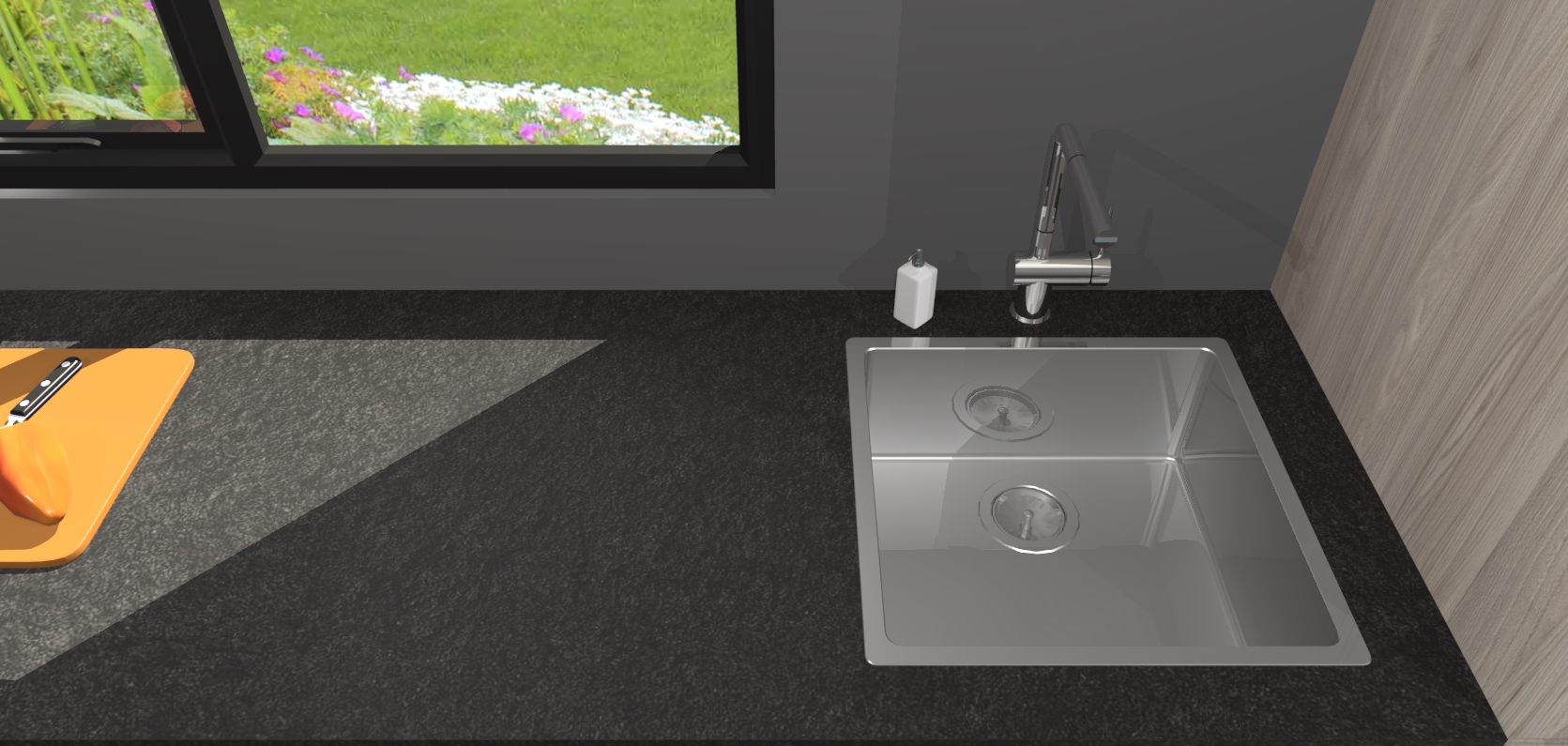 - De spoelbak is nog niet in gevreesd. Dit dient tijdens het werk gedaan te worden