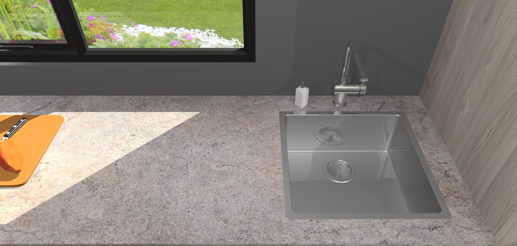 • De spoelbak is nog niet in gevreesd. Dit dient tijdens het werk gedaan te worden