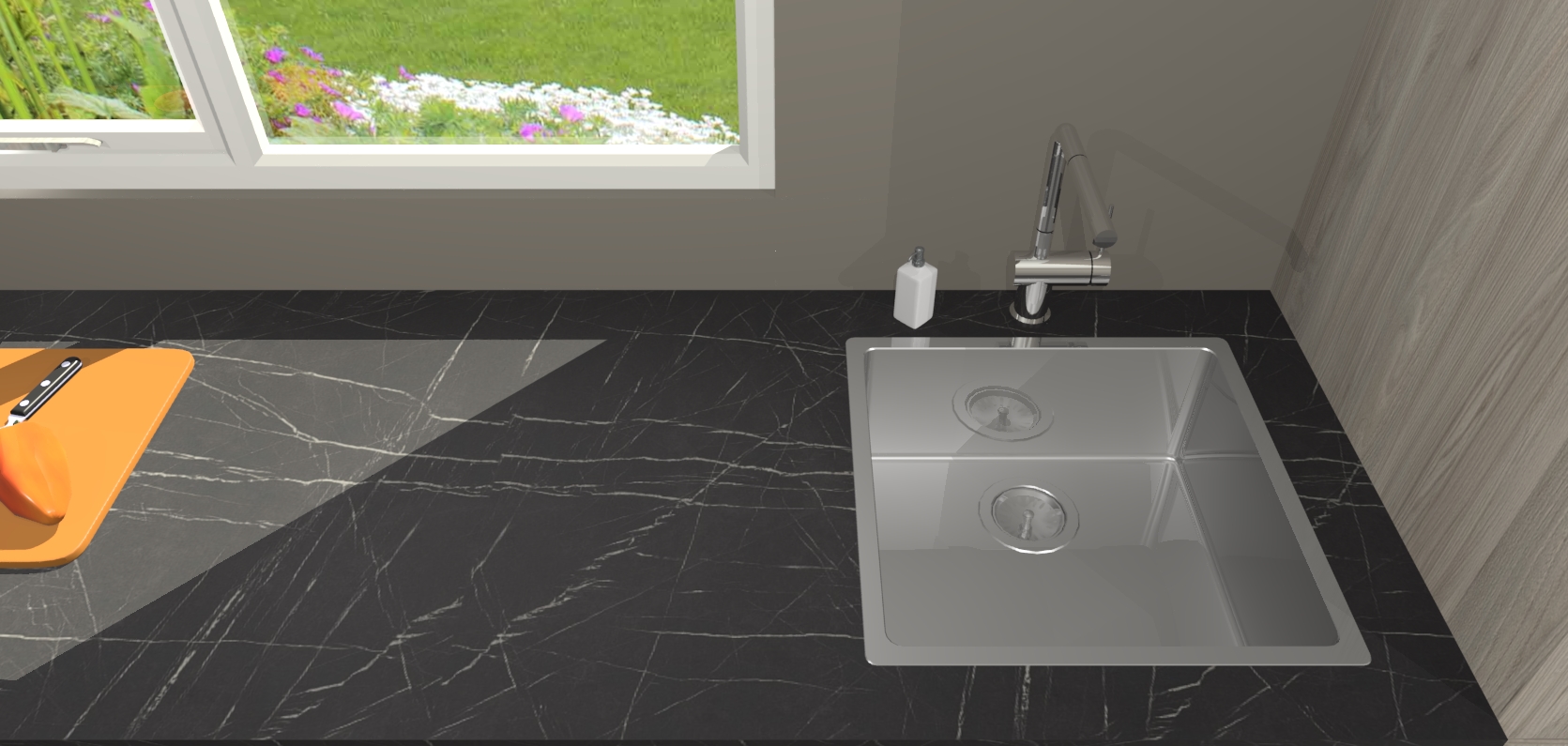 - De spoelbak is nog niet in gevreesd. Dit dient tijdens het werk gedaan te worden