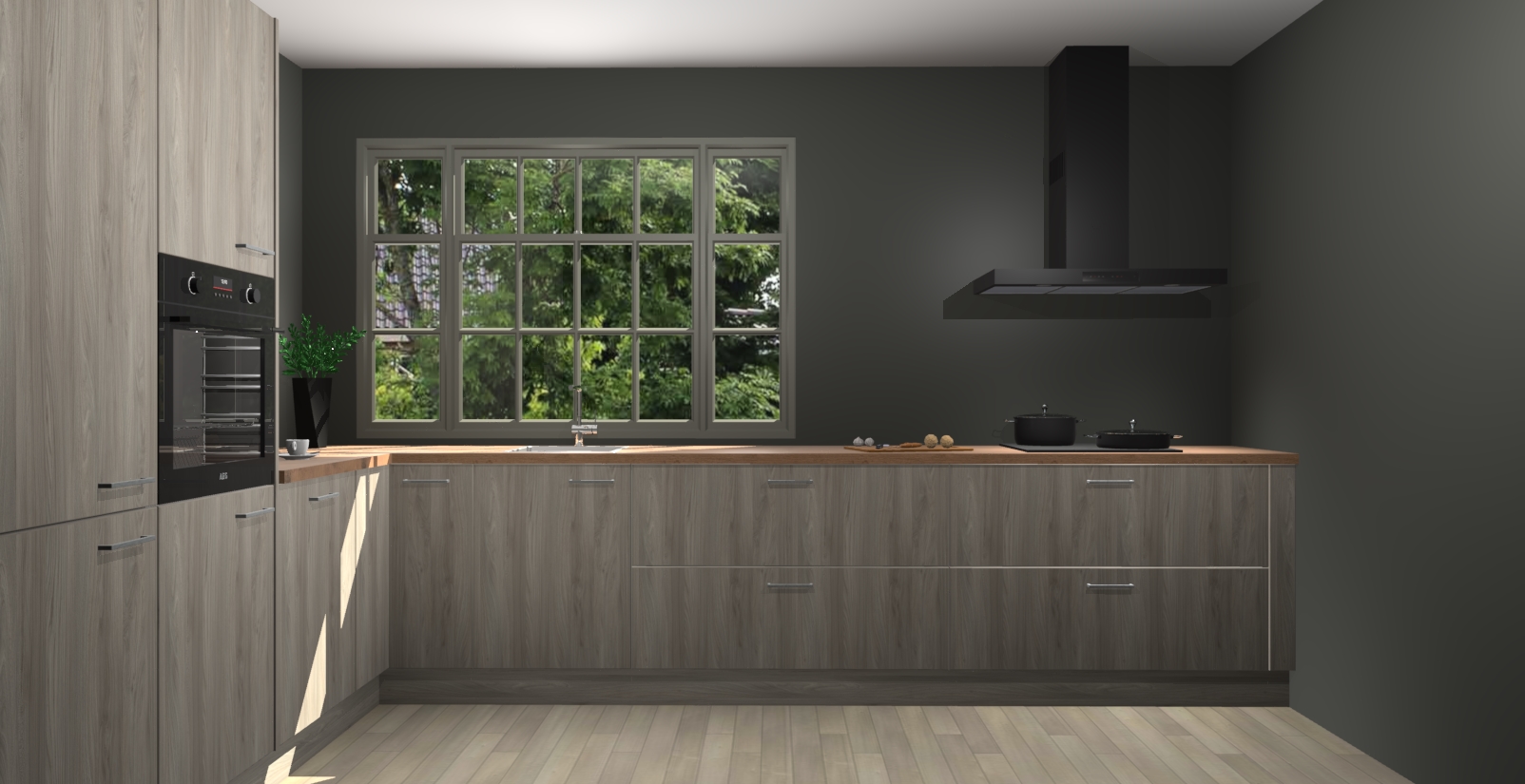 Kom dichtbij de perfecte keuken van uw dromen met de Olm keuken Malaga. Met een prachtige houtlook en eigentijds ontwerp, straalt deze keuken warmte en sfeer uit. Of u nu liefhebber bent van traditionele of moderne stijlen, er is genoeg ruimte om aan al uw behoeften te voldoen.