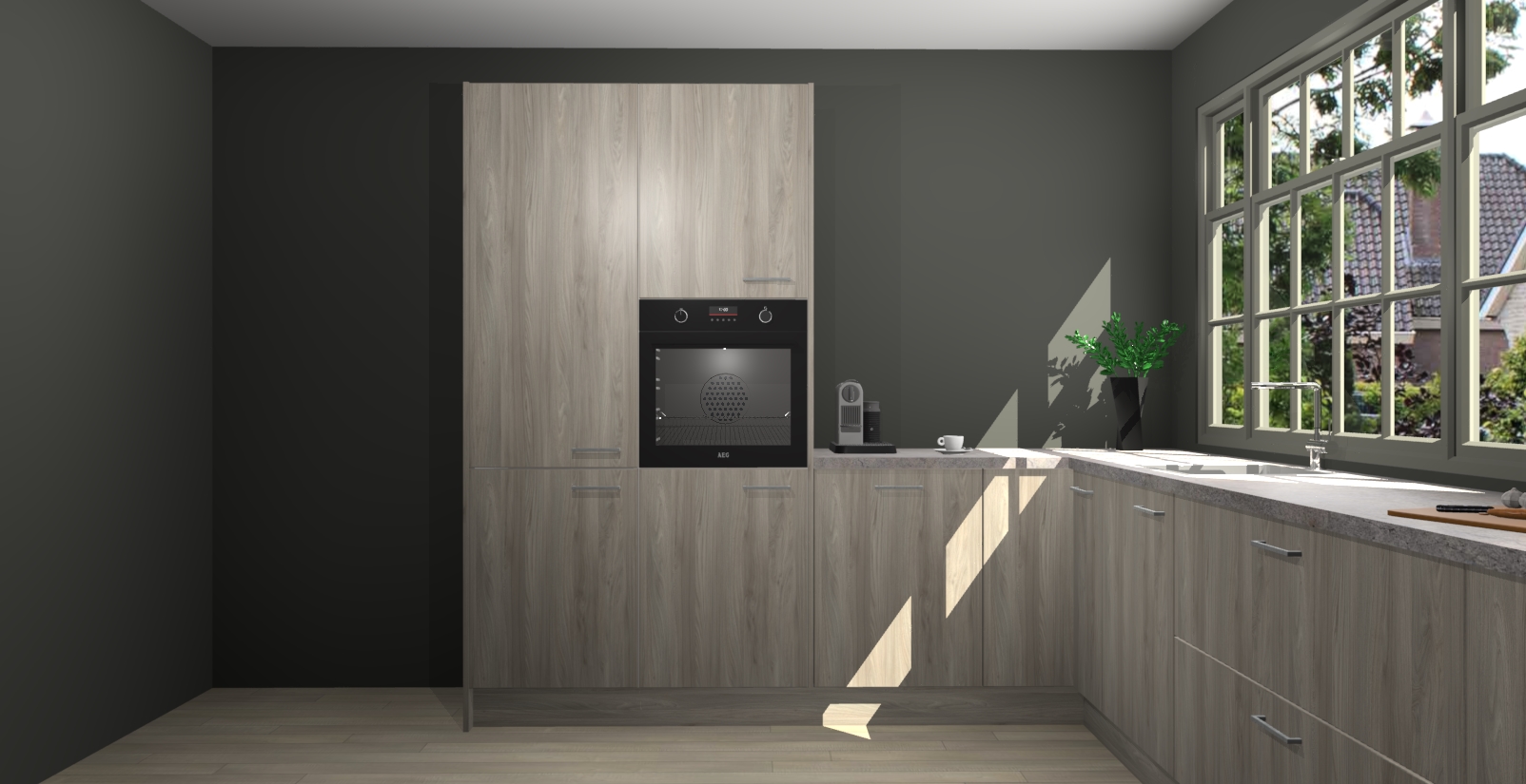 Kom dichtbij de perfecte keuken van uw dromen met de Olm keuken Malaga. Met een prachtige houtlook en eigentijds ontwerp, straalt deze keuken warmte en sfeer uit. Of u nu liefhebber bent van traditionele of moderne stijlen, er is genoeg ruimte om aan al uw behoeften te voldoen.