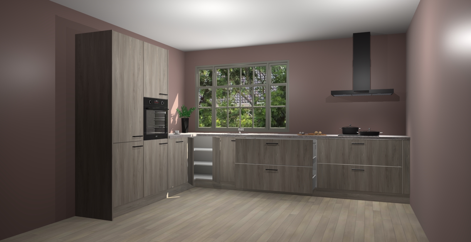 Kom dichtbij de perfecte keuken van uw dromen met de Olm keuken Malaga. Met een prachtige houtlook en eigentijds ontwerp, straalt deze keuken warmte en sfeer uit. Of u nu liefhebber bent van traditionele of moderne stijlen, er is genoeg ruimte om aan al uw behoeften te voldoen.