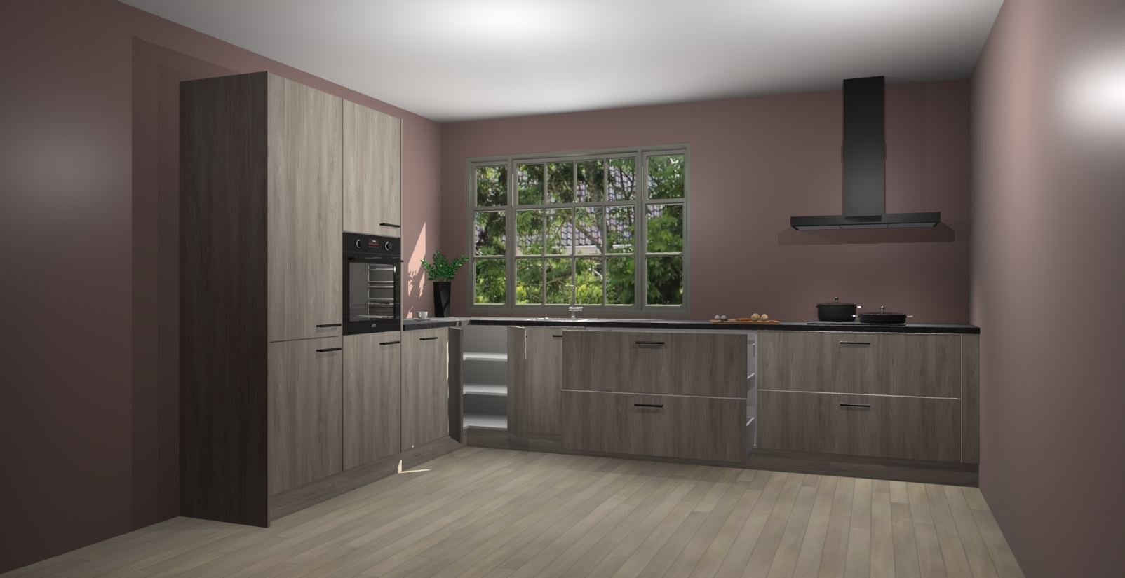 Kom dichtbij de perfecte keuken van uw dromen met de Olm keuken Malaga. Met een prachtige houtlook en eigentijds ontwerp, straalt deze keuken warmte en sfeer uit. Of u nu liefhebber bent van traditionele of moderne stijlen, er is genoeg ruimte om aan al uw behoeften te voldoen.