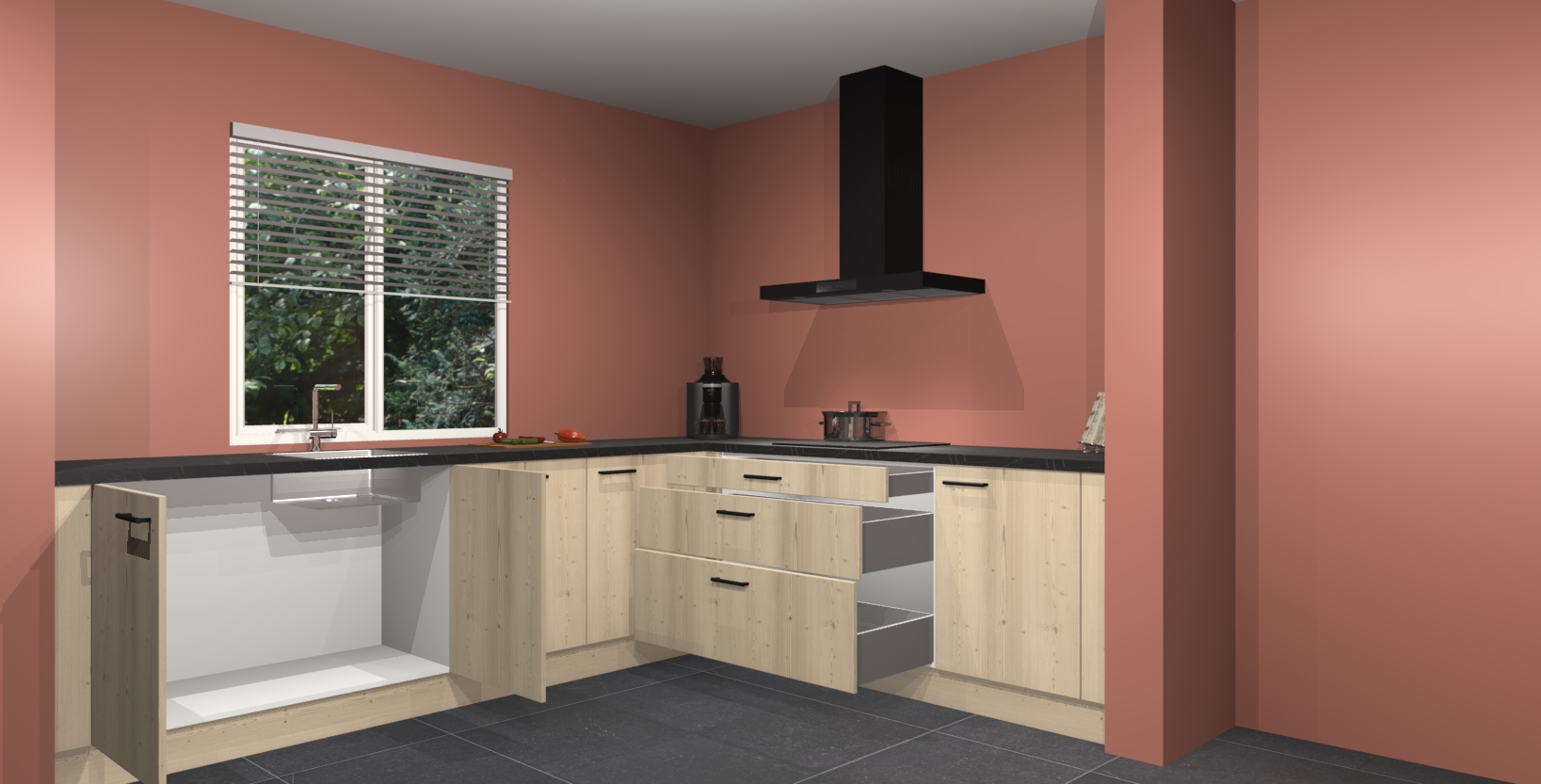 - Bij een hoekwerkblad zijn de hoeken in gevreesd en op maat gemaakt