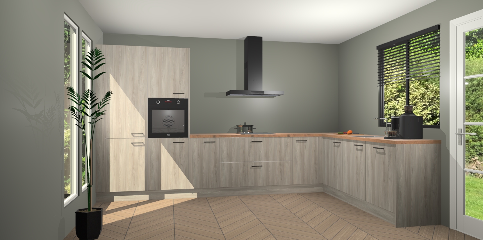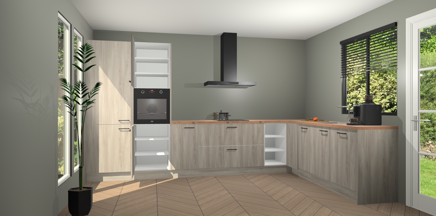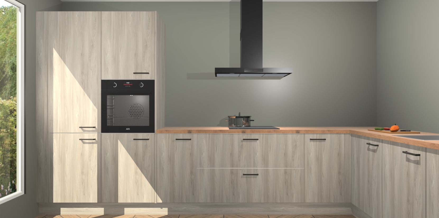 Met een modern, tijdloos design en ruime opslagruimte, zult u zich in no-time thuis voelen in uw nieuwe keuken. Uw leven wordt eenvoudiger met de soft-close deuren die voor het ultieme stille comfort zorgen - geen geluid dat u stoort terwijl u kookt. Ook is de keuken voorzien van 5 ingebouwde apparaten: een oven, inductie kookplaat, afzuigkap, vaatwasser en koelkast. Deze kunnen gemakkelijk na bestelling worden bijgewerkt naar AEG - waardoor uw luxe ervaring compleet is.