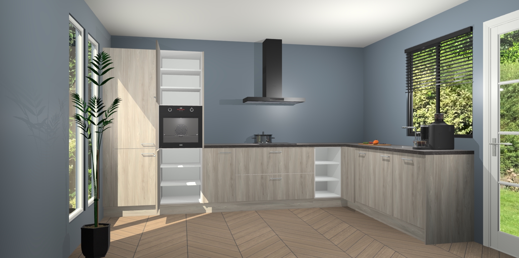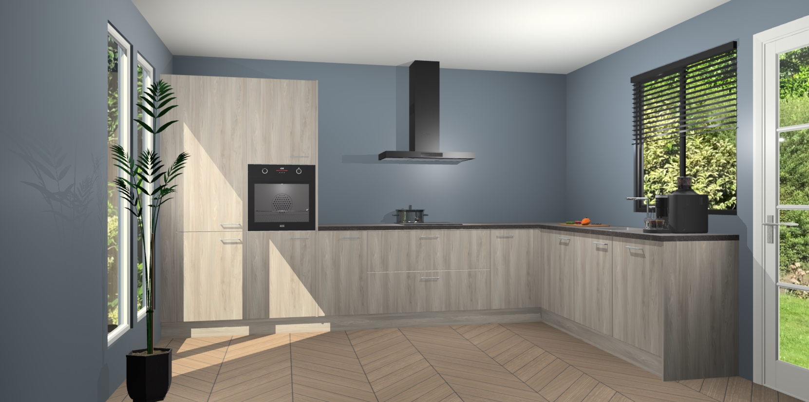 Met een modern, tijdloos design en ruime opslagruimte, zult u zich in no-time thuis voelen in uw nieuwe keuken. Uw leven wordt eenvoudiger met de soft-close deuren die voor het ultieme stille comfort zorgen - geen geluid dat u stoort terwijl u kookt. Ook is de keuken voorzien van 5 ingebouwde apparaten: een oven, inductie kookplaat, afzuigkap, vaatwasser en koelkast. Deze kunnen gemakkelijk na bestelling worden bijgewerkt naar AEG - waardoor uw luxe ervaring compleet is.