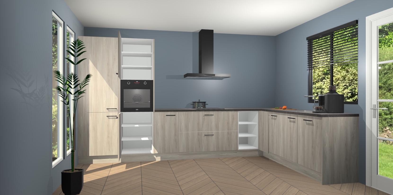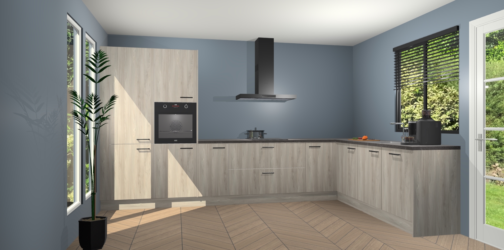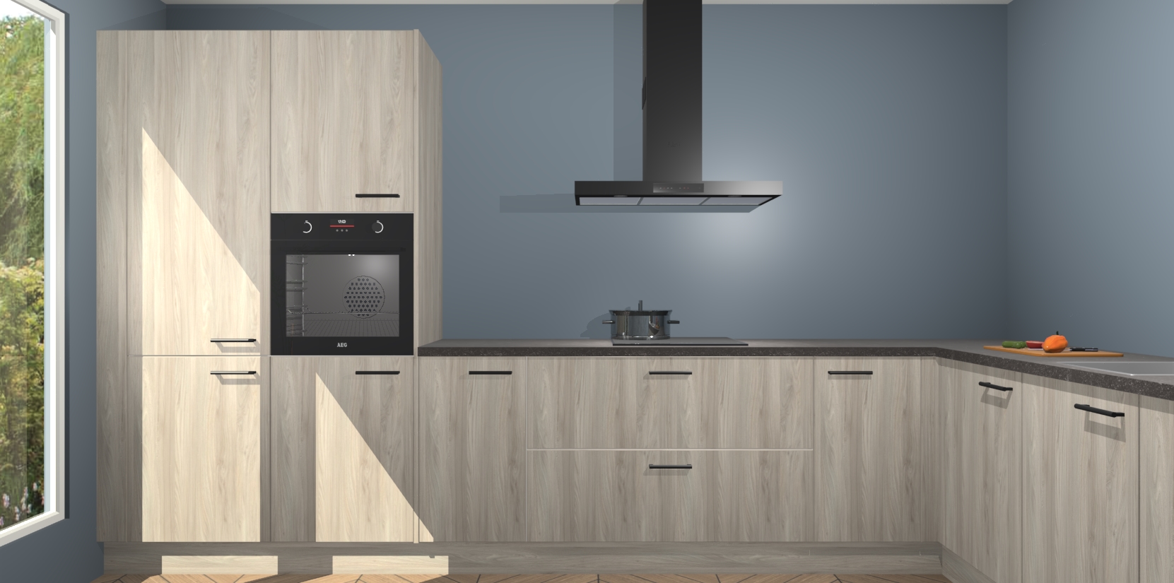 Met een modern, tijdloos design en ruime opslagruimte, zult u zich in no-time thuis voelen in uw nieuwe keuken. Uw leven wordt eenvoudiger met de soft-close deuren die voor het ultieme stille comfort zorgen - geen geluid dat u stoort terwijl u kookt. Ook is de keuken voorzien van 5 ingebouwde apparaten: een oven, inductie kookplaat, afzuigkap, vaatwasser en koelkast. Deze kunnen gemakkelijk na bestelling worden bijgewerkt naar AEG - waardoor uw luxe ervaring compleet is.