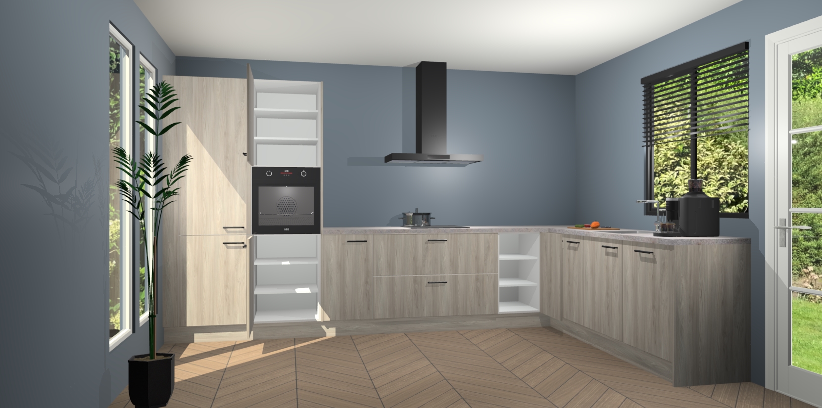 Met een modern, tijdloos design en ruime opslagruimte, zult u zich in no-time thuis voelen in uw nieuwe keuken. Uw leven wordt eenvoudiger met de soft-close deuren die voor het ultieme stille comfort zorgen - geen geluid dat u stoort terwijl u kookt. Ook is de keuken voorzien van 5 ingebouwde apparaten: een oven, inductie kookplaat, afzuigkap, vaatwasser en koelkast. Deze kunnen gemakkelijk na bestelling worden bijgewerkt naar AEG - waardoor uw luxe ervaring compleet is.