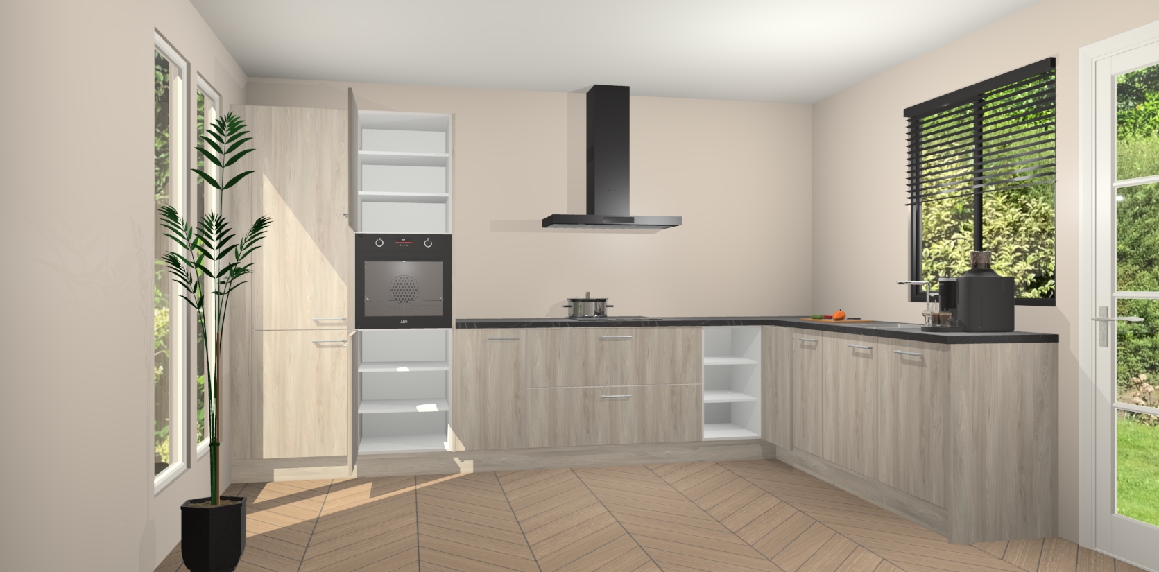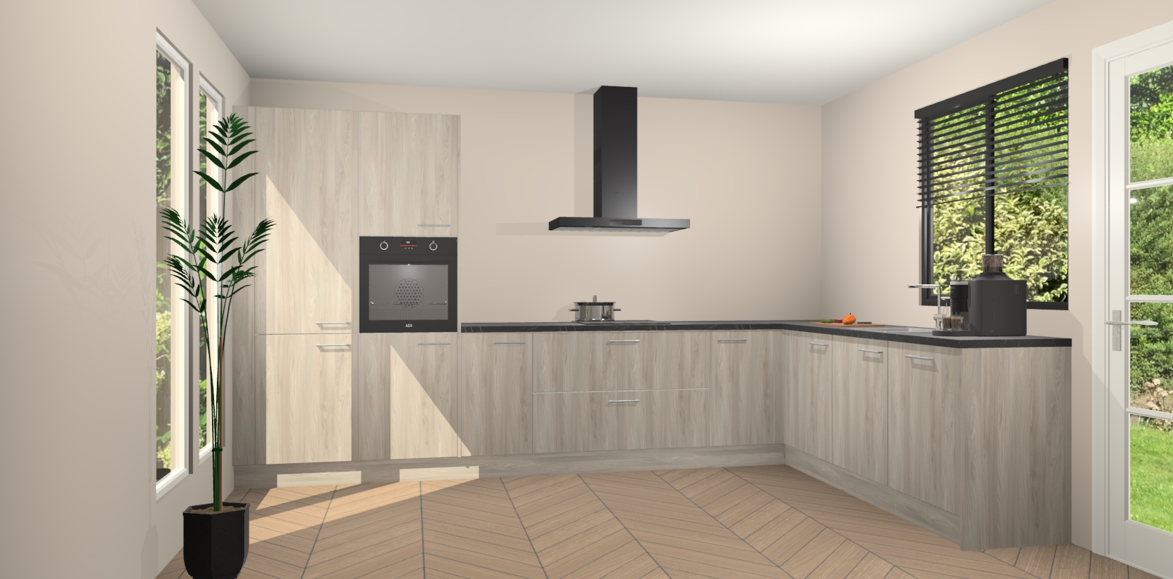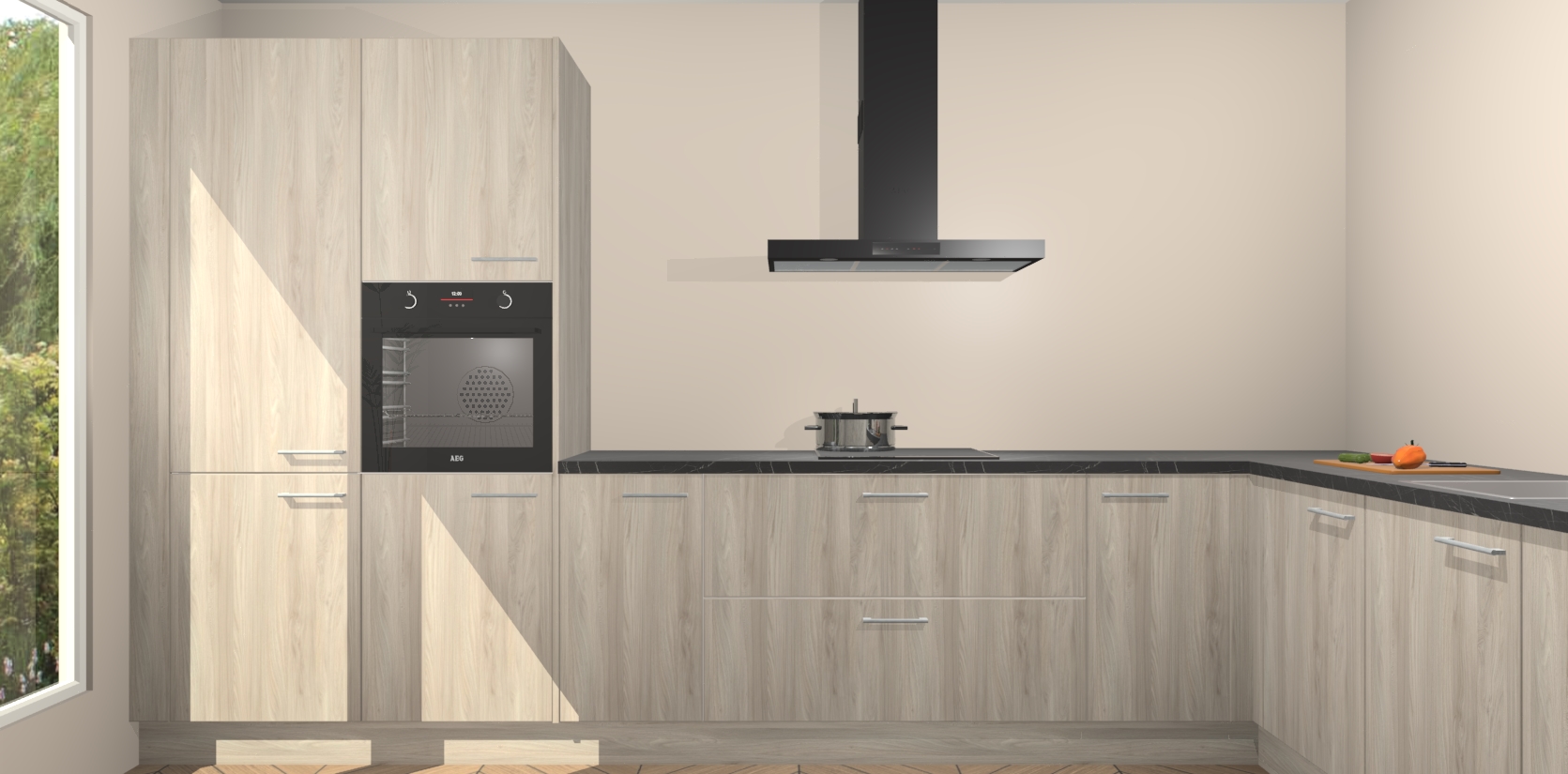 Met een modern, tijdloos design en ruime opslagruimte, zult u zich in no-time thuis voelen in uw nieuwe keuken. Uw leven wordt eenvoudiger met de soft-close deuren die voor het ultieme stille comfort zorgen - geen geluid dat u stoort terwijl u kookt. Ook is de keuken voorzien van 5 ingebouwde apparaten: een oven, inductie kookplaat, afzuigkap, vaatwasser en koelkast. Deze kunnen gemakkelijk na bestelling worden bijgewerkt naar AEG - waardoor uw luxe ervaring compleet is.
