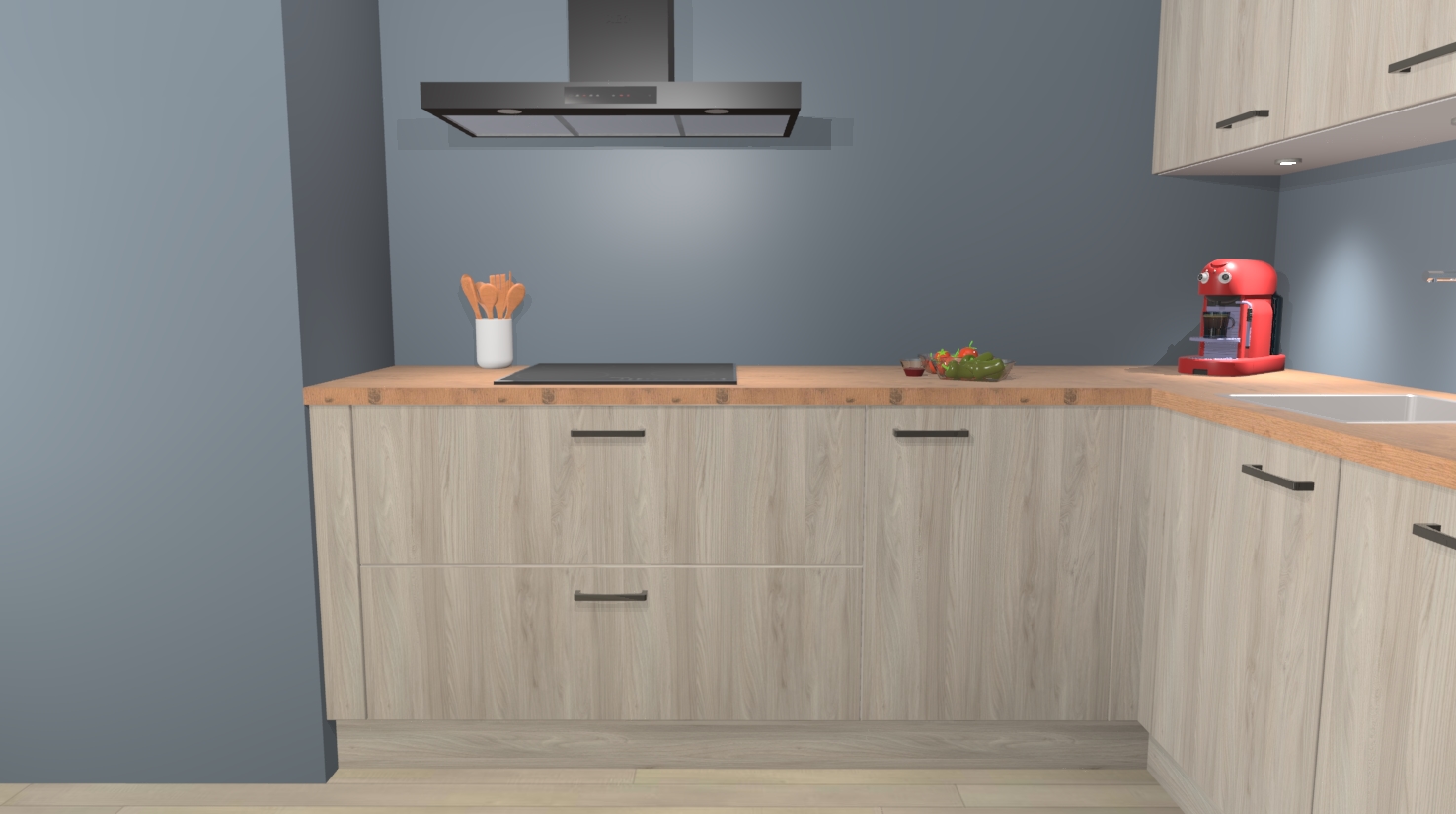 In deze box zijn alle kleuren verzameld van de deuren en werkbladen. Vraag de gratis kleurenbox aan en kijk thuis rustig verder!