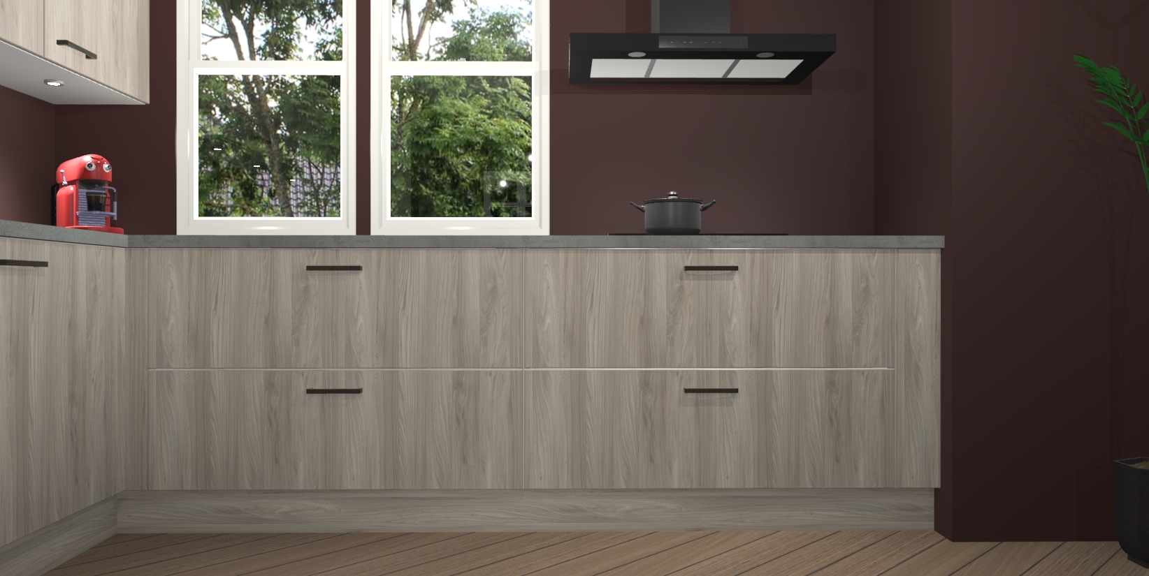 Inclusief plinten, stelpoten en werkblad