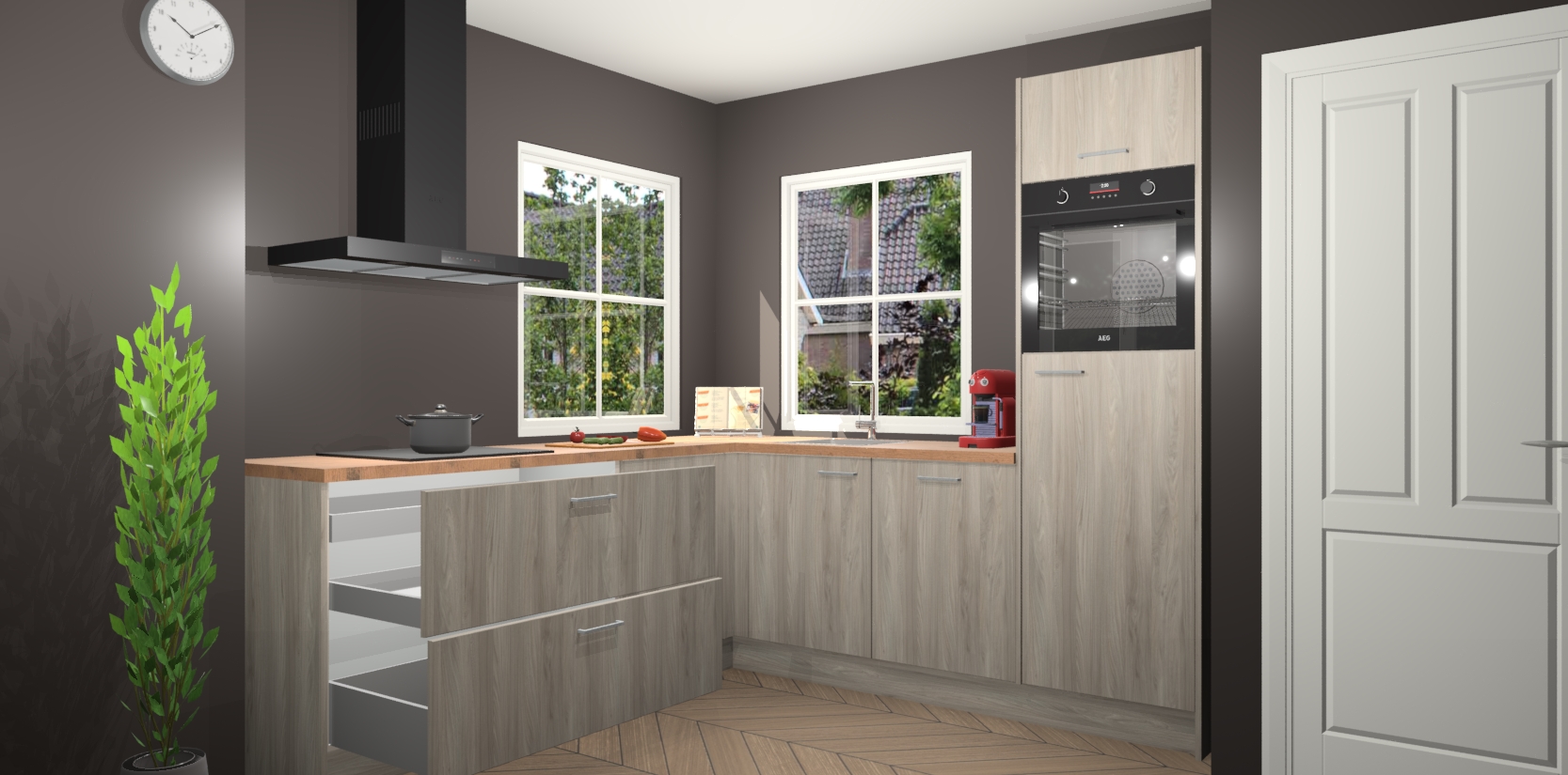 In deze box zijn alle kleuren verzameld van de deuren en werkbladen. Vraag de gratis kleurenbox aan en kijk thuis rustig verder!