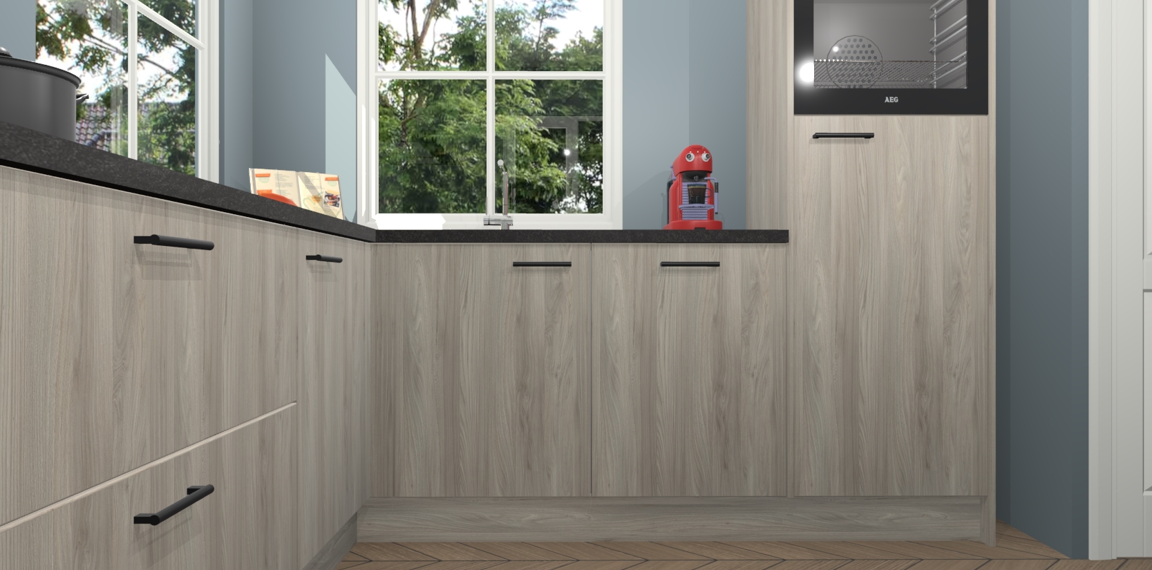 In deze box zijn alle kleuren verzameld van de deuren en werkbladen. Vraag de gratis kleurenbox aan en kijk thuis rustig verder!
