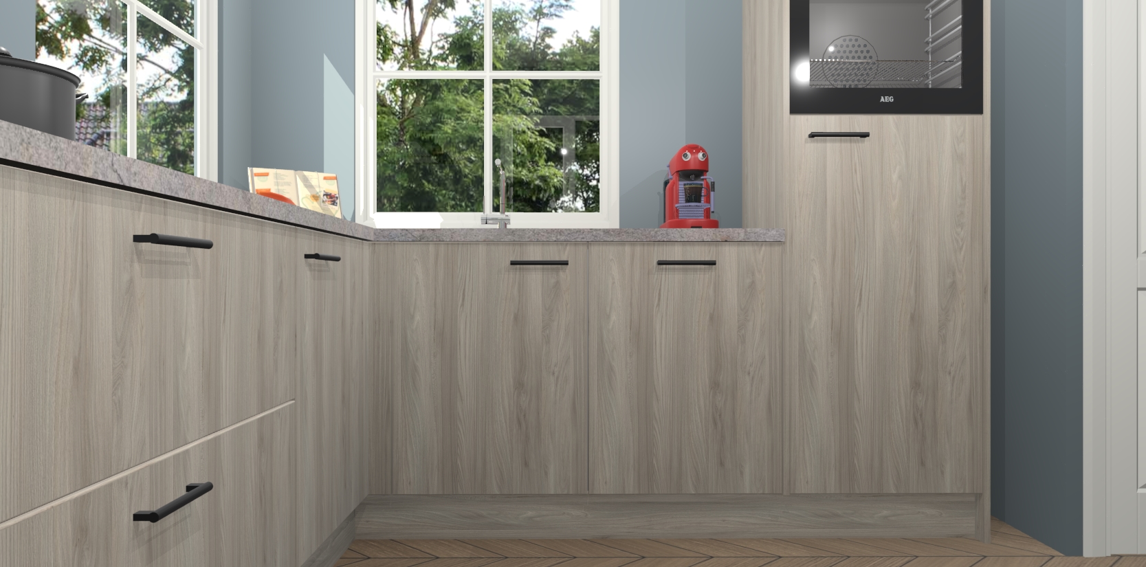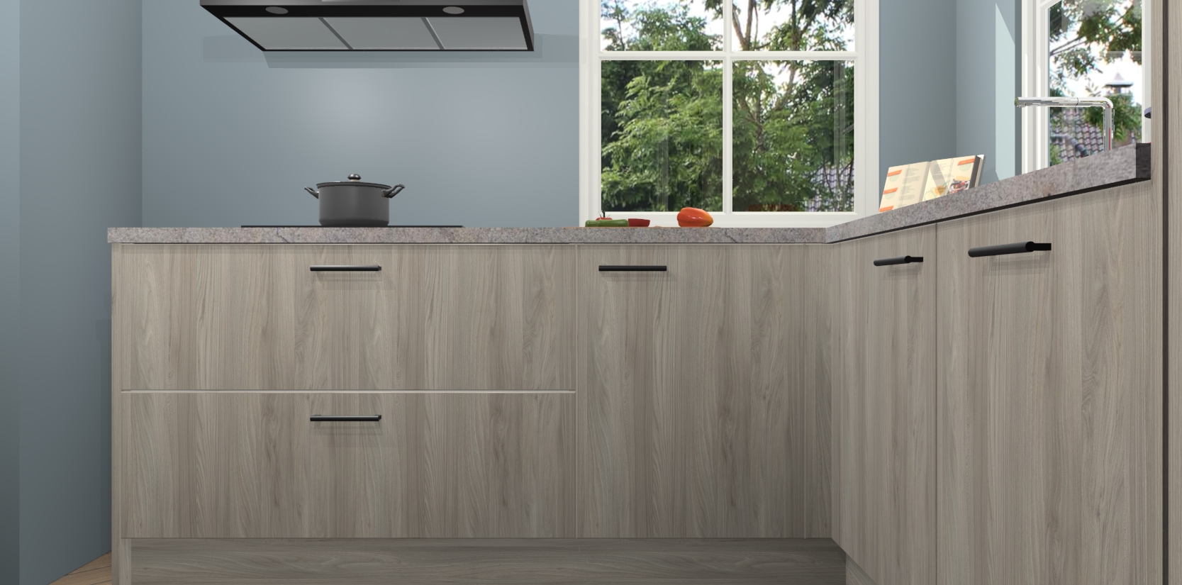 In deze box zijn alle kleuren verzameld van de deuren en werkbladen. Vraag de gratis kleurenbox aan en kijk thuis rustig verder!