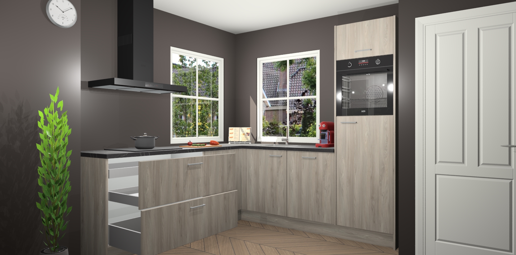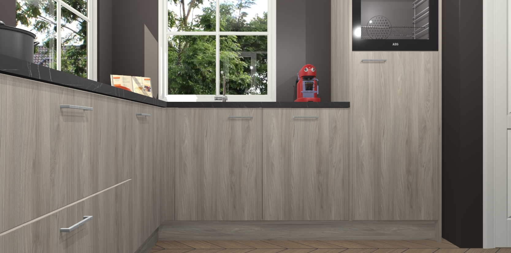 In deze box zijn alle kleuren verzameld van de deuren en werkbladen. Vraag de gratis kleurenbox aan en kijk thuis rustig verder!
