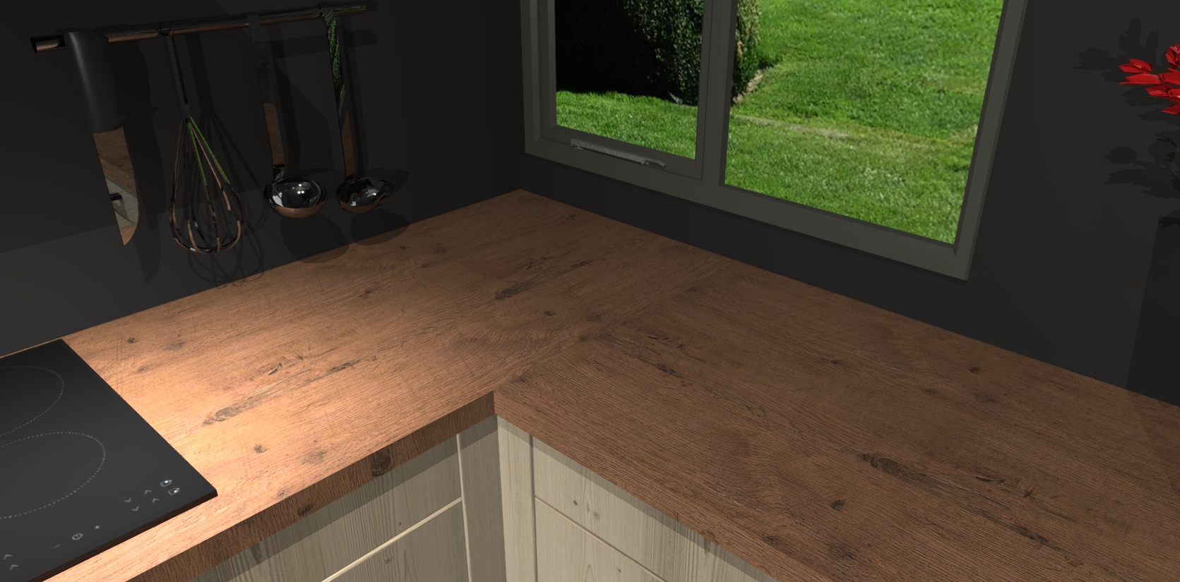 - Bij een hoekwerkblad zijn de hoeken in gevreesd en op maat gemaakt