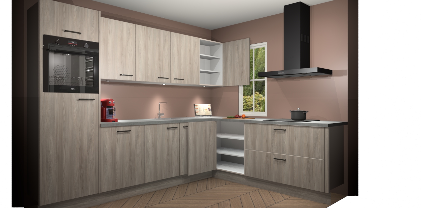 Inclusief plinten, stelpoten en werkblad