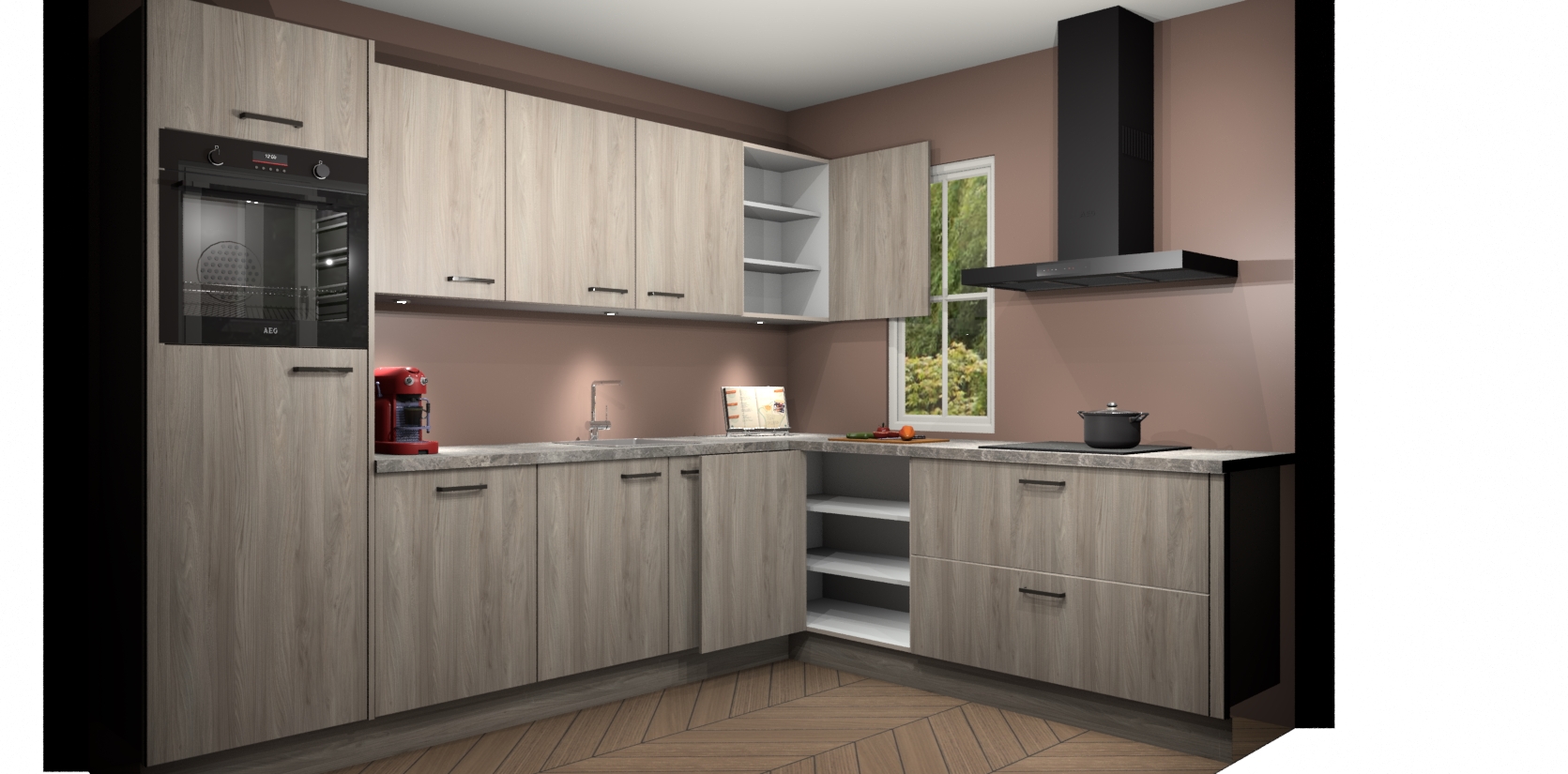 Inclusief plinten, stelpoten en werkblad
