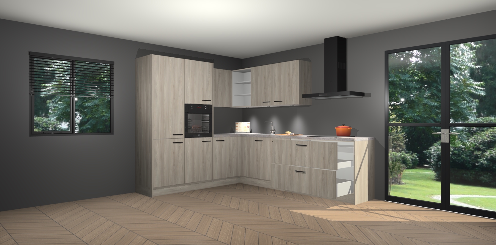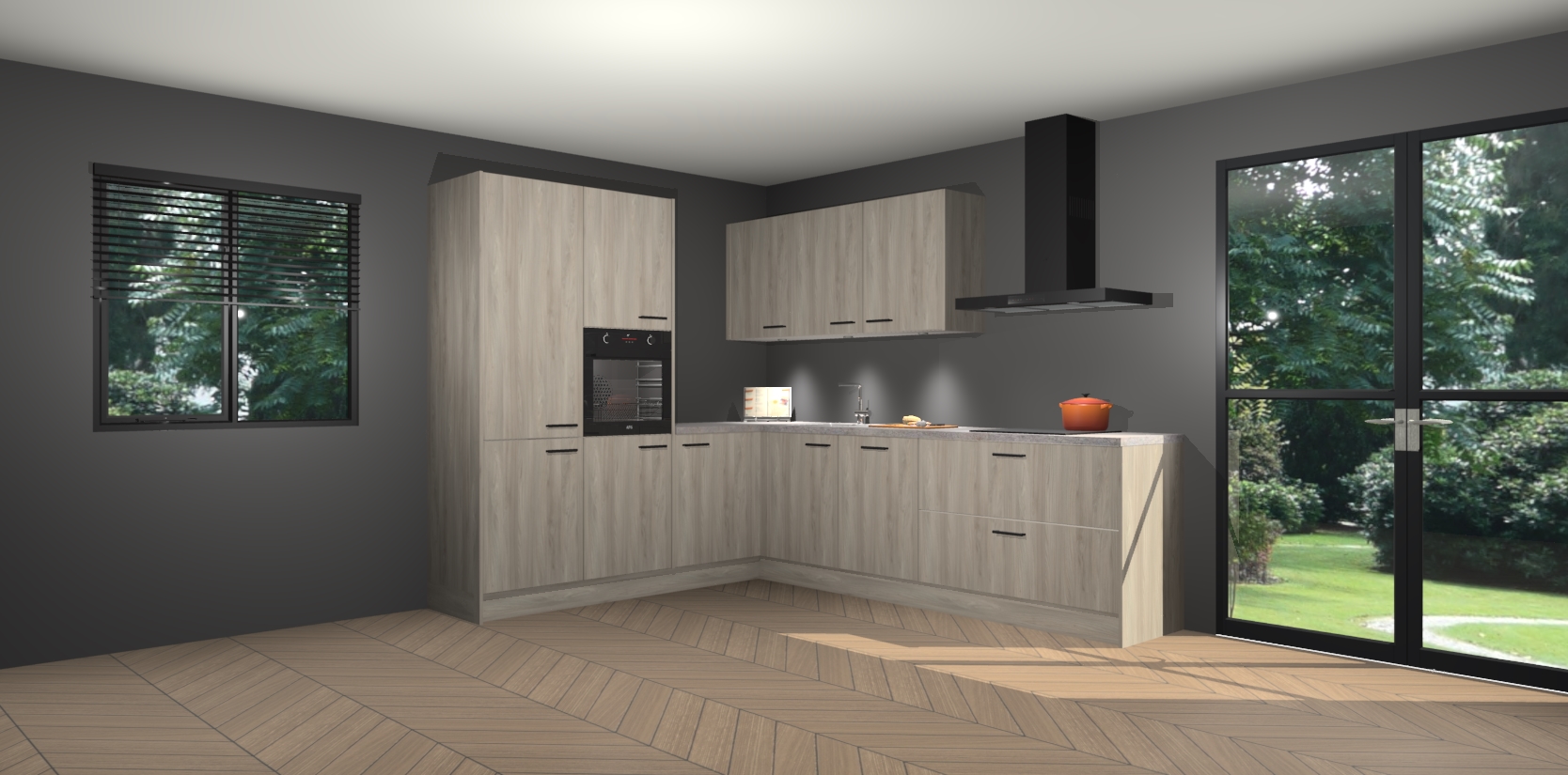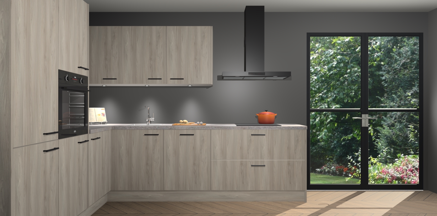 Maak kennis met de olm keuken Parla - de perfecte aanvulling voor uw moderne keuken! Ervaar tijdloos design, elegantie en een chique uitstraling met onze zwarte handgrepen, soft-close deuren en veel opbergruimte. Dit alles wordt aangeboden tegen een vaste lage prijs voor ongeëvenaarde Duitse keukenkwaliteit!