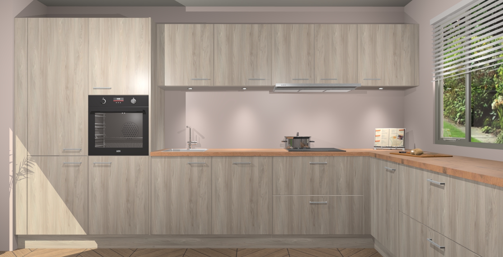 Verwelkom de natuurlijke warmte van de Olm keuken Petten in uw huis. Deze prachtige hoekkeuken met zijn moderne design en warme houten look geeft u meer dan genoeg opbergruimte om uw comfortabel te voelen in uw keuken. Geniet van soft-close deuren die al uw gasten het gevoel zullen geven dat ze zich in een luxueuze ruimte bevinden.