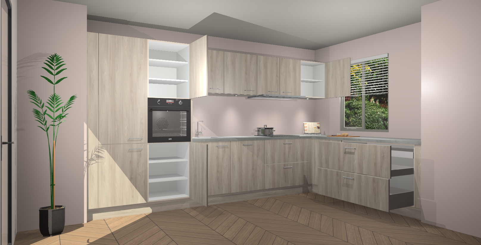 Verwelkom de natuurlijke warmte van de Olm keuken Petten in uw huis. Deze prachtige hoekkeuken met zijn moderne design en warme houten look geeft u meer dan genoeg opbergruimte om uw comfortabel te voelen in uw keuken. Geniet van soft-close deuren die al uw gasten het gevoel zullen geven dat ze zich in een luxueuze ruimte bevinden.