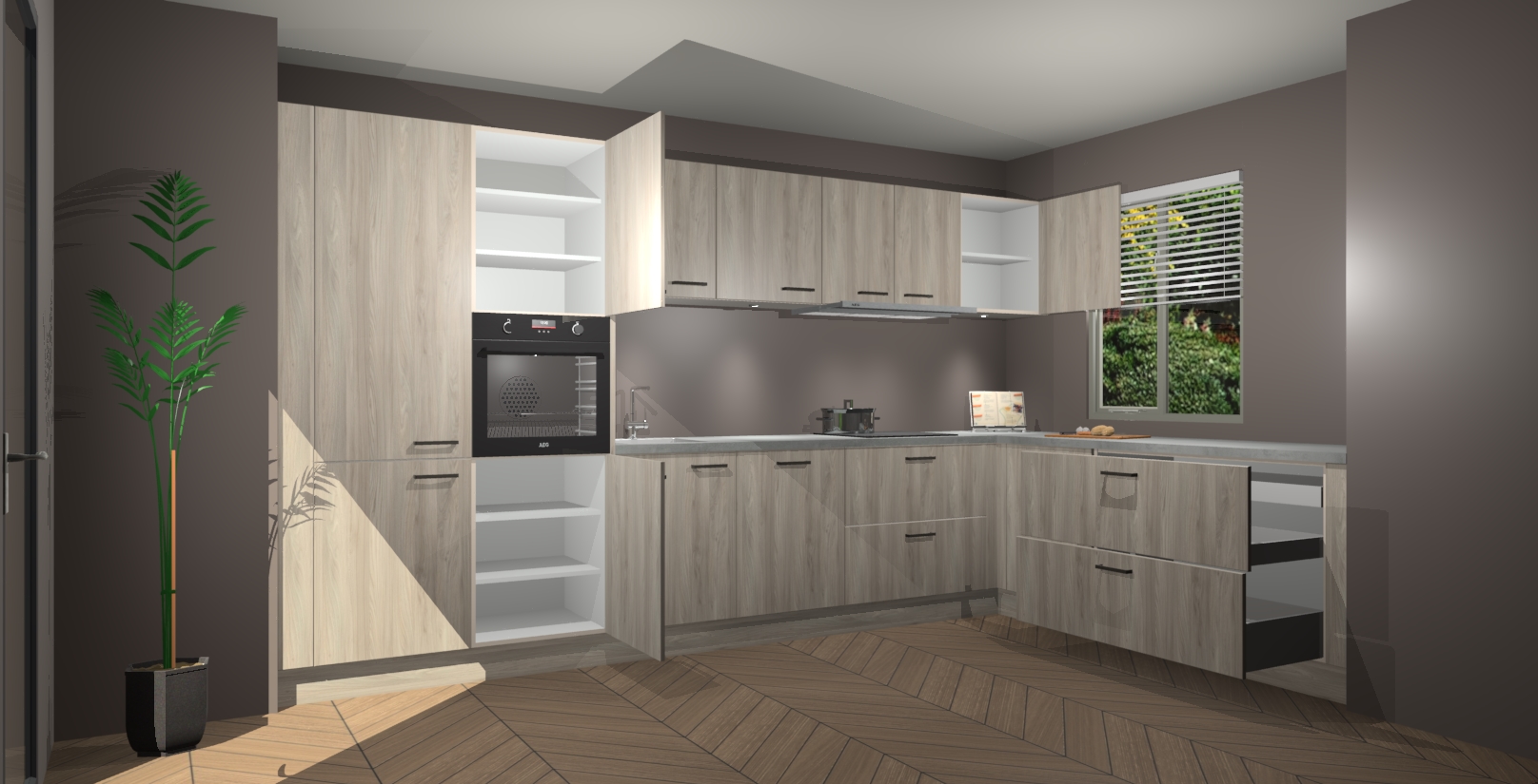 Verwelkom de natuurlijke warmte van de Olm keuken Petten in uw huis. Deze prachtige hoekkeuken met zijn moderne design en warme houten look geeft u meer dan genoeg opbergruimte om uw comfortabel te voelen in uw keuken. Geniet van soft-close deuren die al uw gasten het gevoel zullen geven dat ze zich in een luxueuze ruimte bevinden.