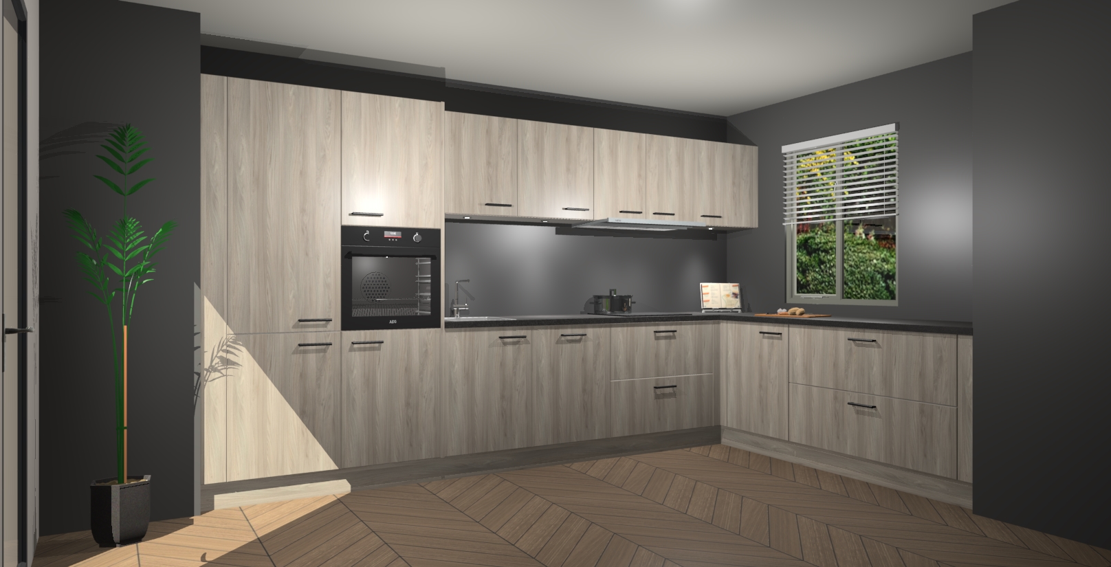 Verwelkom de natuurlijke warmte van de Olm keuken Petten in uw huis. Deze prachtige hoekkeuken met zijn moderne design en warme houten look geeft u meer dan genoeg opbergruimte om uw comfortabel te voelen in uw keuken. Geniet van soft-close deuren die al uw gasten het gevoel zullen geven dat ze zich in een luxueuze ruimte bevinden.