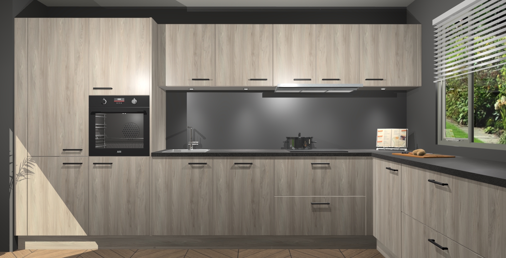 Uw droom van een sprookje binnenshuis is nu binnen handbereik met 5 inbouwapparaten in dit complete pakket: een oven, inductiekookplaat, afzuigkap, vaatwasser en koelkast! Haal deze geraffineerde en warme sfeer nu sneller in huis dan normaal - wij garanderen een snelle levering binnen 7 weken.