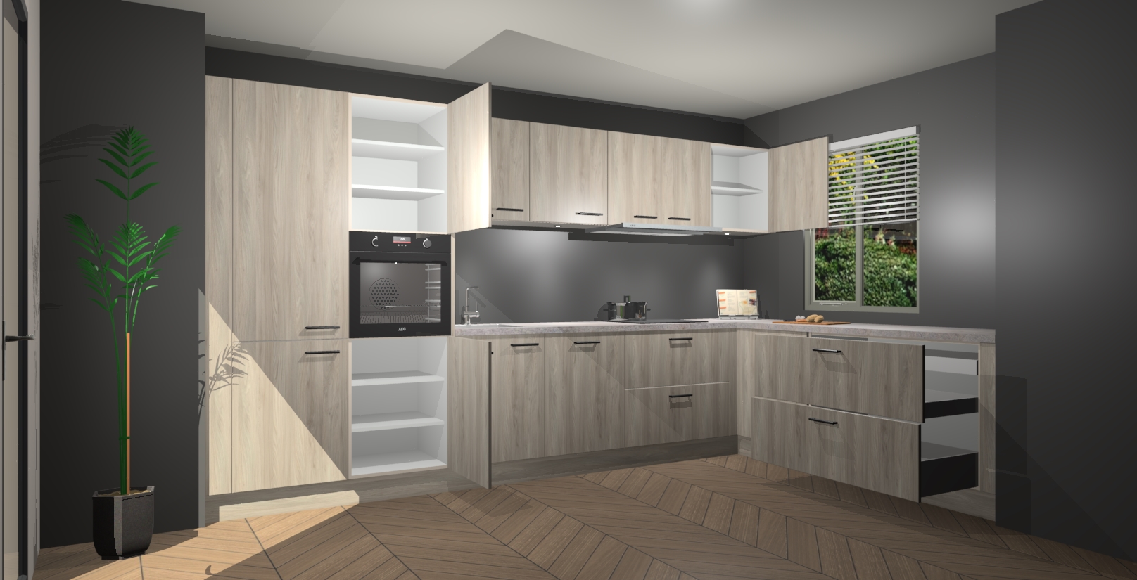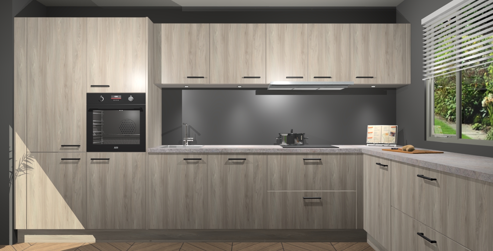 Verwelkom de natuurlijke warmte van de Olm keuken Petten in uw huis. Deze prachtige hoekkeuken met zijn moderne design en warme houten look geeft u meer dan genoeg opbergruimte om uw comfortabel te voelen in uw keuken. Geniet van soft-close deuren die al uw gasten het gevoel zullen geven dat ze zich in een luxueuze ruimte bevinden.