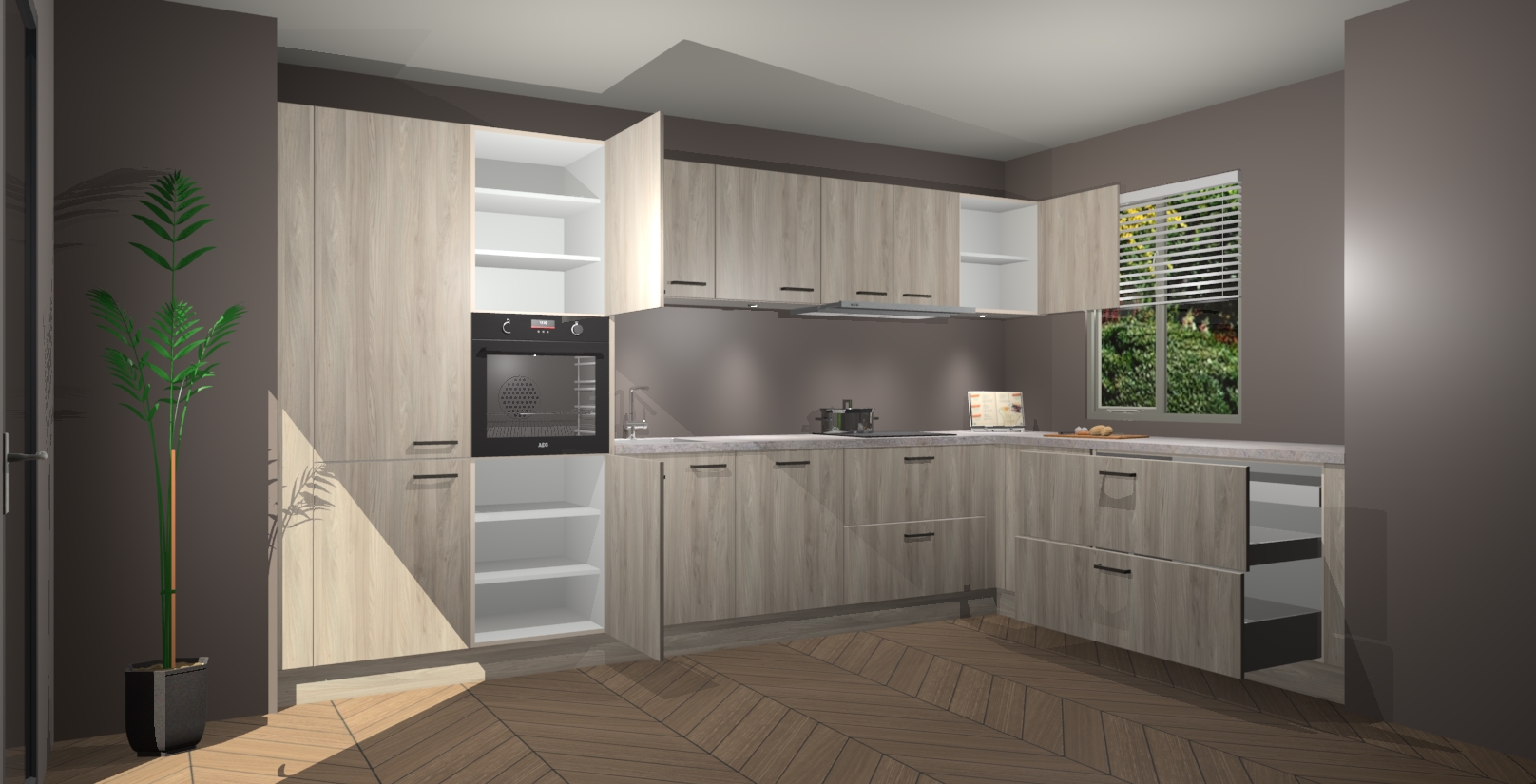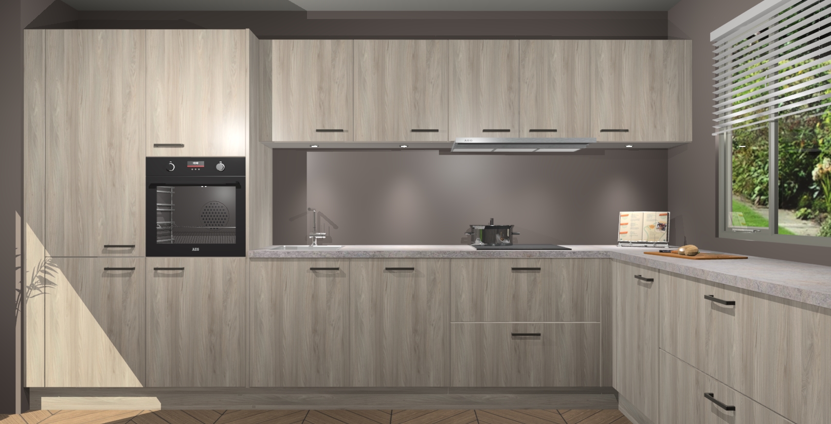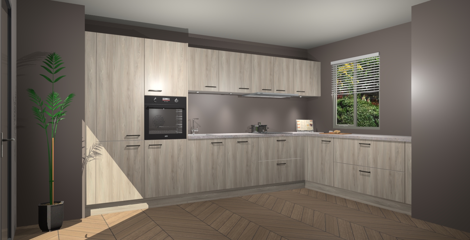 Verwelkom de natuurlijke warmte van de Olm keuken Petten in uw huis. Deze prachtige hoekkeuken met zijn moderne design en warme houten look geeft u meer dan genoeg opbergruimte om uw comfortabel te voelen in uw keuken. Geniet van soft-close deuren die al uw gasten het gevoel zullen geven dat ze zich in een luxueuze ruimte bevinden.