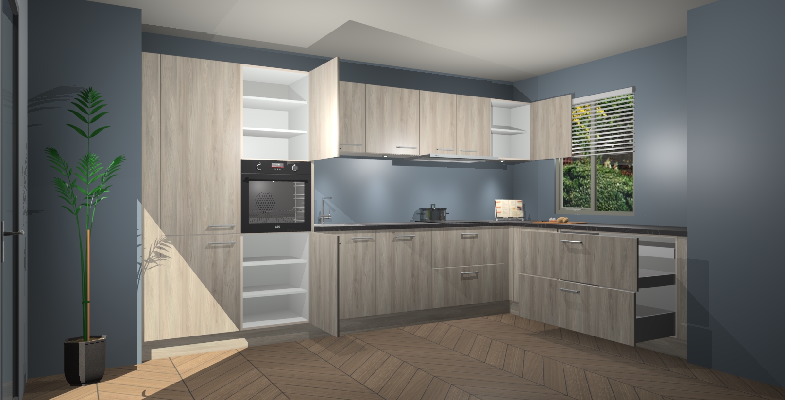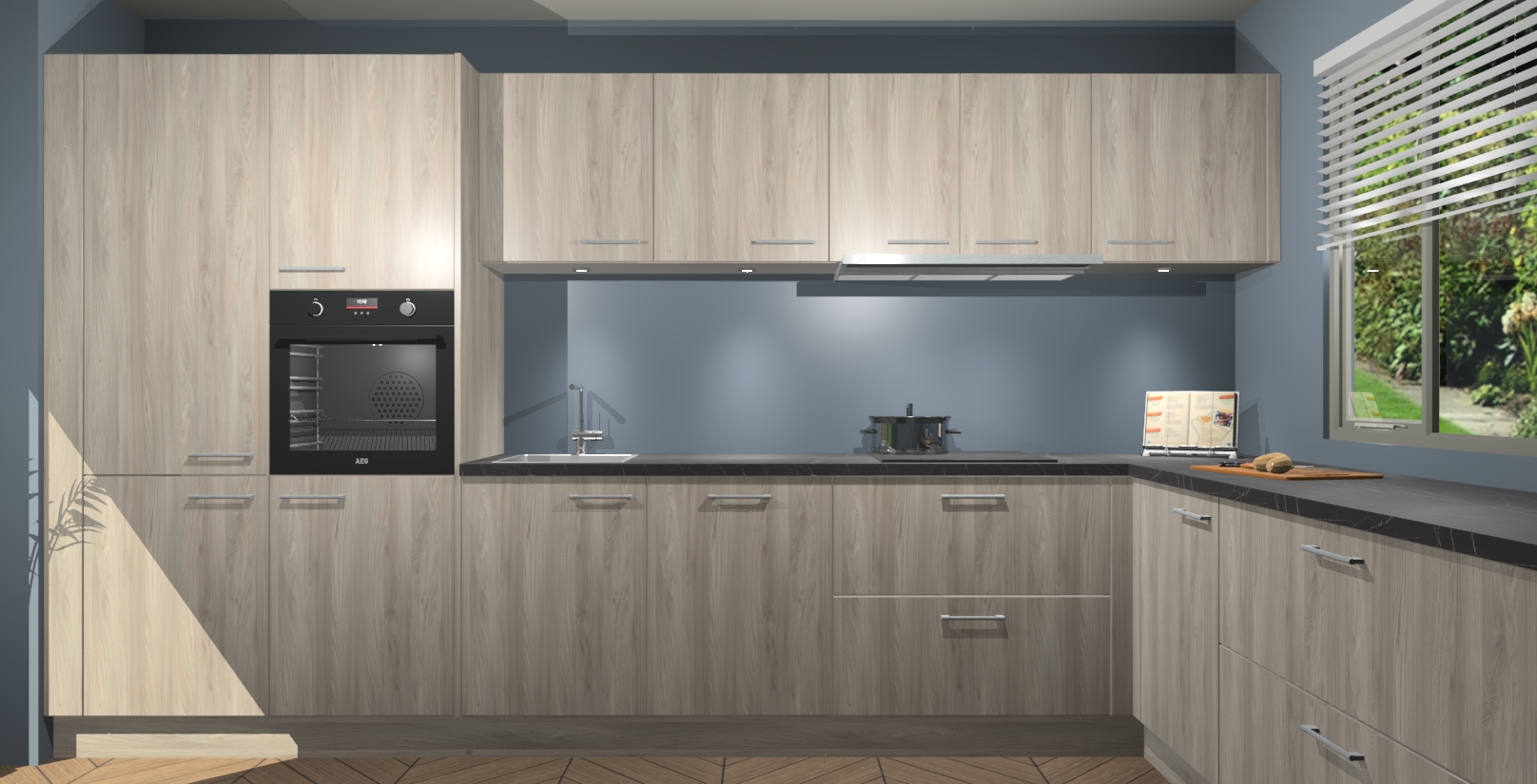 Verwelkom de natuurlijke warmte van de Olm keuken Petten in uw huis. Deze prachtige hoekkeuken met zijn moderne design en warme houten look geeft u meer dan genoeg opbergruimte om uw comfortabel te voelen in uw keuken. Geniet van soft-close deuren die al uw gasten het gevoel zullen geven dat ze zich in een luxueuze ruimte bevinden.