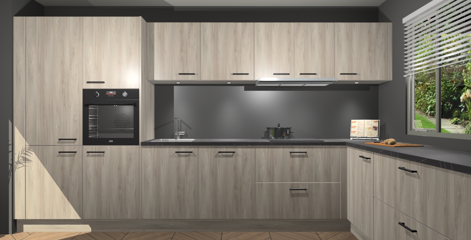 Verwelkom de natuurlijke warmte van de Olm keuken Petten in uw huis. Deze prachtige hoekkeuken met zijn moderne design en warme houten look geeft u meer dan genoeg opbergruimte om uw comfortabel te voelen in uw keuken. Geniet van soft-close deuren die al uw gasten het gevoel zullen geven dat ze zich in een luxueuze ruimte bevinden.
