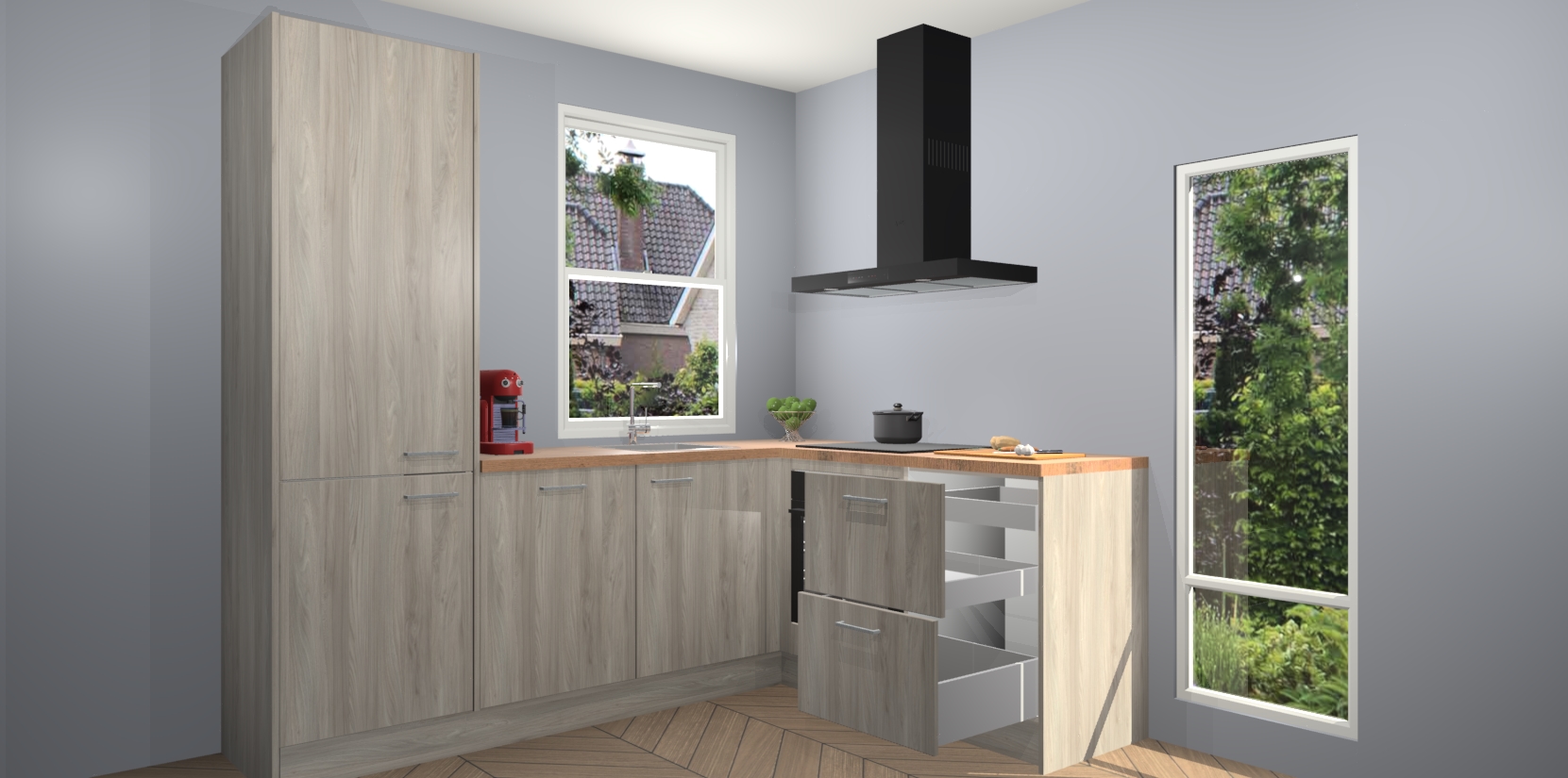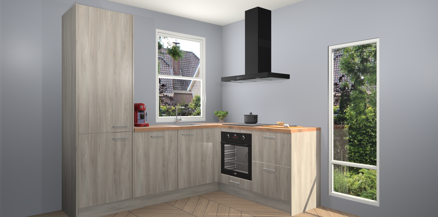 De prachtige Olm keuken Phuket is de perfecte keuze als u op zoek bent naar een moderne hoekkeuken met alle luxe en comfort die u kunt verwachten! De uitstraling in het houtlook-design draagt bij aan de warme sfeer die u nu al voelt wanneer u er naar kijkt. Heeft u genoeg van ouderwetse keukens? Probeer dan direct deze moderne, mooie hoekkeukens en laat iedereen verbluft achter!