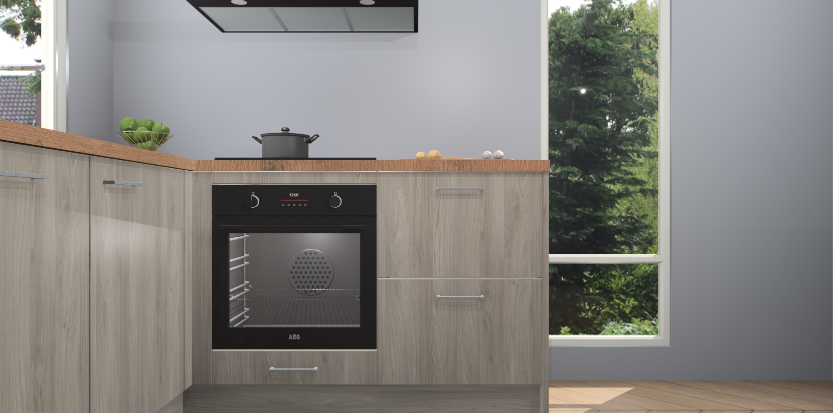 De Olm keuken Phuket heeft alles wat u maar kunt wensen. Niet alleen zijn er softclose deuren, maar ook 5 ingebouwde apparaten: een oven, inductiekookplaat, afzuigkap, vaatwasser en koelkast - waarbij u later gemakkelijk naar het AEG merk, van inductiekookplaat naar kookplaat met geïntegreerde afzuiging of van oven naar combimagnetron kunt upgraden. Dat alles tegen een vast laag tarief! Bovendien geeft de Olm keuken Phuket supersnelle levering van 7 weken. Echt iets voor u als u er niet op wilt wachten om het resultaat te zien in eigen keuken!