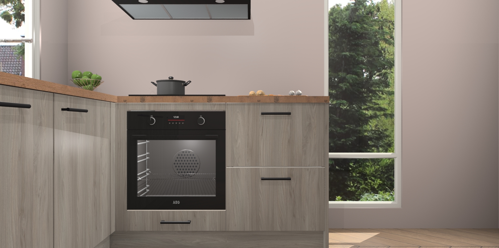 De Olm keuken Phuket heeft alles wat u maar kunt wensen. Niet alleen zijn er softclose deuren, maar ook 5 ingebouwde apparaten: een oven, inductiekookplaat, afzuigkap, vaatwasser en koelkast - waarbij u later gemakkelijk naar het AEG merk, van inductiekookplaat naar kookplaat met geïntegreerde afzuiging of van oven naar combimagnetron kunt upgraden. Dat alles tegen een vast laag tarief! Bovendien geeft de Olm keuken Phuket supersnelle levering van 7 weken. Echt iets voor u als u er niet op wilt wachten om het resultaat te zien in eigen keuken!